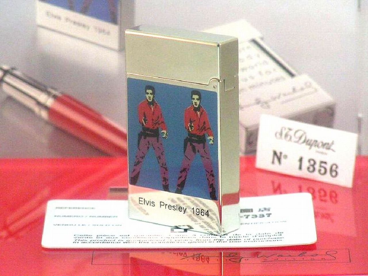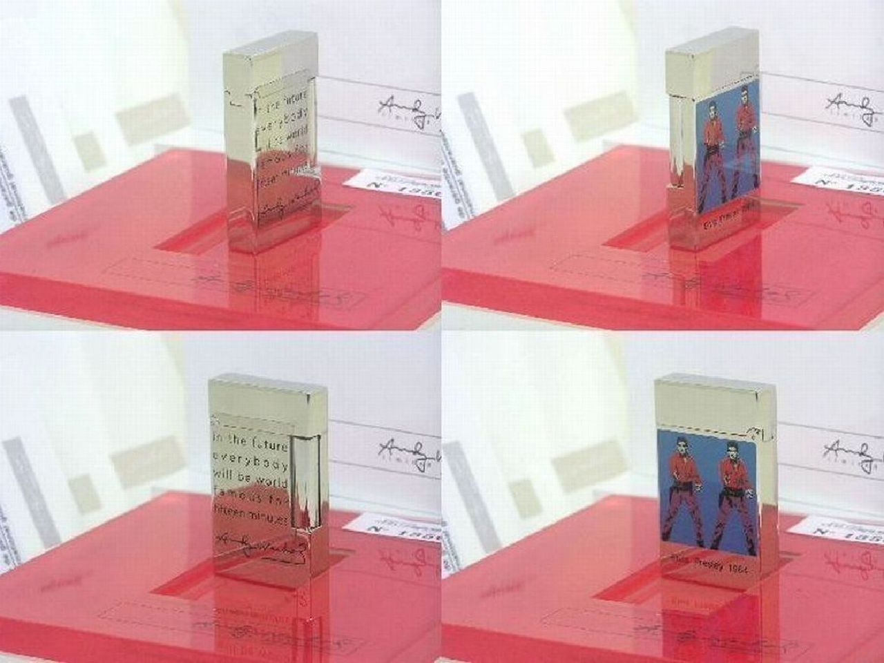 | お立ち寄り 有難う御座います ワンワンです (〇) 初めに いつも迅速なお取り引きを行ってる皆様は 中ほど 項目 ■ 製品シリーズ・出品 本体・附属品 などに ジャンプ 移動 ください (〇) 改めまして この出品は 落札者様 !にお支払い 商品 受け取り連絡後 商品代金など受取り可能になる出品物です お支払方法 !かんたん決済(銀行振込み・クレジットカード・コンビニ払い・PayPay決済など) 落札者様 !にお支払 → 出品者 発送 → 落札者様 受取連絡後 → !へ商品代金など支払申請 落札者様 受け取り連絡されない場合 商品代金など出品者が受け取り出来ますのは 19日後前後で御座います ご入札はご配送先に商品ご到着 その後 2日以内にシステム受取り連絡されます方のみでお願いします もし満たされない場合も出来るだけ私から催促致しませんが新たなお取引き遠慮します事はご了承ください 発送 決済確定日お時間によりまして 当日 又は 翌日 発送させて戴く出品物です 消費税はお預かりできません お支払い かんたん決済 送料と落札額 落札後 購入手続開始・決済完了は 落札日・休祝日を除く 2日以内で御座います こちらを満たされない場合はナビ連絡 その後 落札者様都合の削除します 入札前ご連絡くださいまして予め合意 厳守してくださいます方は ご案内限りではありません (〇) !落札ガイドを1度も既読ご確認されてない場合や!初めての方は この文字列クリック !落札ガイド商品ページ確認ポイント 4.※ 他同落札ガイド 03~05 など全般1度はご参照ください (〇) 商品 出品の多くは 世界を代表致します有名ブランド品 綺麗なお品 未使用品 珍しい御品 又 激レア限定未使用品 自身のコレクションに国内直営店にて購入させて戴いた希少限定品も存在 365日湿度管理・完全未展示保管 (〇) 出品 こちらは エス・テー・デュポン ライン2 ガスライター 限定Wエルヴィス 商品説明フォローコメントなど既読ご自身の希望に合っているかを入札前にご確認ご判断してください フォローコメントは この文字列クリック 全出品物ページ1番上に御座います (〇) 他の私の:ID wan_wan_678 を含む 今までに適確な取り引き戴いてます方を除く 日本文章に慣れてない方 (The person who is not used to Japanese, a Japanese sentence) 翻訳ソフトでなく(no translation software)記載商品説明ご案内日本文字文章など日本人同等に理解できる方 又は日本人同等の解釈 助言 又は代筆 代理会話して戴ける方が そばにいらっしゃる環境の方のみでお願いします 上記 環境でない場合 入札避けてください。 (〇) S.T.Dupon アンディ・ウォーホル アンディ・ウォーホル、20世紀の最も有名な芸術家、現代美術の中心人物。 1960年代初頭にウォーホルは、作品にポップアートを取り入れるようになり 1962年には、彼のトレードマークとなった新たな手法を採用 その手法は、非常に明るい色で色づけしてキャンバスに複製するという シルクスクリーン技法を用いるというものでした エス・テー・デュポンは ポップアートの巨匠アンディに敬意を表し 3つの限定品を制作 この ポップアートシルクスクリーン 限定ダブル・エルビスライターは1986個の限定品 20世紀を代表するアーチスト、アンディ・ウォーホルのポップアート 3個の代表作 W・エルビス、マリリン・モンロー、アンディ・ウォーホール自画像 『 S.T.Dupont Andy Warhol Limited Edition Elvis 』 以下通常文です ■ S.T.Dupont ■ ■ ブランド本国・製造国・品名 S.T.Dupont Paris Made in France エス・テー・デュポン ライン2 限定ガスライター □ 画像説明 出品 未使用品 ご案内をメインに画像を拡大 その後縮小 現実サイズでご覧ください 綿手袋使用 お写真では白い糸又点の繊維など付いて写ってる場合が多々御座います 個々のシリアル№ 画像確認できない時 購入者様のみ知り得るシリアル№ご質問欄への公開回答は控えさせて戴てます その他のTELまたはメールでのお問い合わせには回答させて戴く時はあります □ 記載説明 正確な記載ご案内に努めてますが 全ての方にご満足戴くのは不可能と思います 不明重要な点は 項目 (◆) ご覧くださいまして入札前にご質問ください その他 出品者情報など全般をご覧くださいまして総合でご判断をお願いします □ 発送方法 ②の発送方法は①の発送方法より現状配送中多くお時間または日数を要してます 早めご到着は①をご選択ください発送方法形式保証額変更後発送させて戴きます (変更後配送中保証最高50万円迄です) ■ 製品シリーズ・出品 本体・附属品 限定数1964 エス・テー・デュポン ライン2 限定ガスライター 限定Wエルヴィス 未使用品 附属品 S.T.Dupont 外箱スリープ / アンディ専用外箱 / 専用純正BOX / 専用ギャランティーカード / 専用取り扱い説明書 / インターナショナルSC冊子 / ナンバータグ / アンディ・ウォーホール限定カタログ / 専用ブックレット / (メイン画像10 上記 未使用品 本体・附属品フルセット) (附属品の樹脂の色やけ厚紙製の汚れ破れ傷すり傷などから逃れられません配送用又は保管用とお