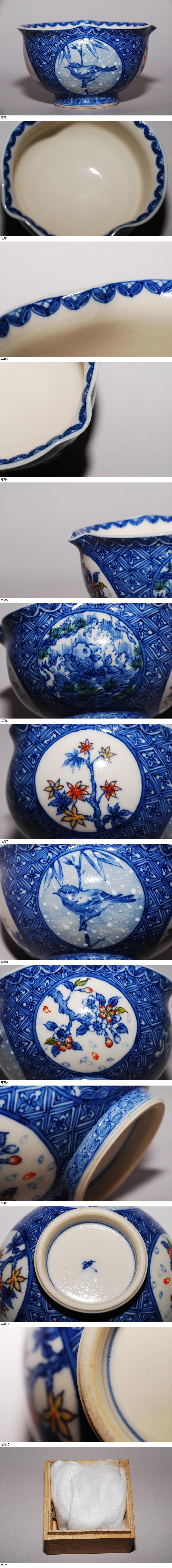 | 伊藤嘉英 造 四季 湯冷 色絵染付 共箱 煎茶道具 湯冷まし | ||||||||||||||
