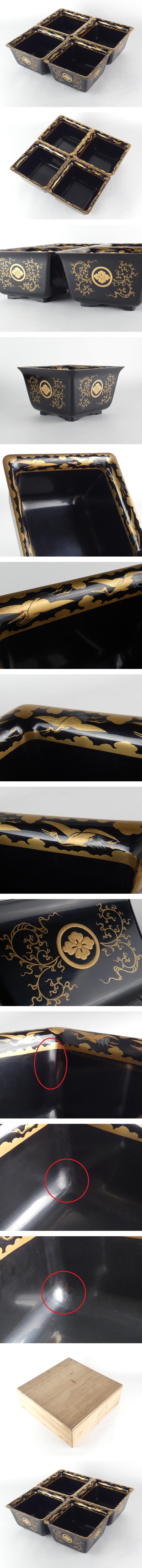 【都屋】時代 鶴 家紋唐草蒔絵 盃洗 4客 zR221 1209 收藏