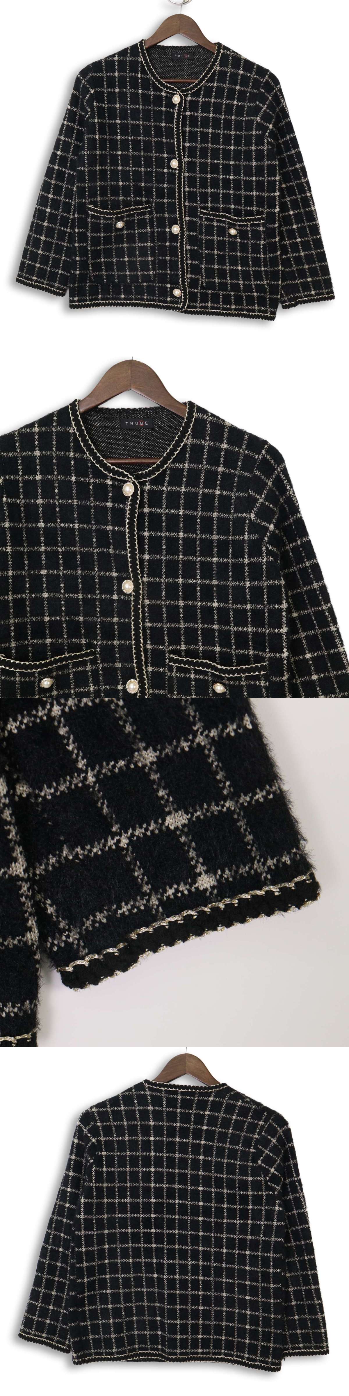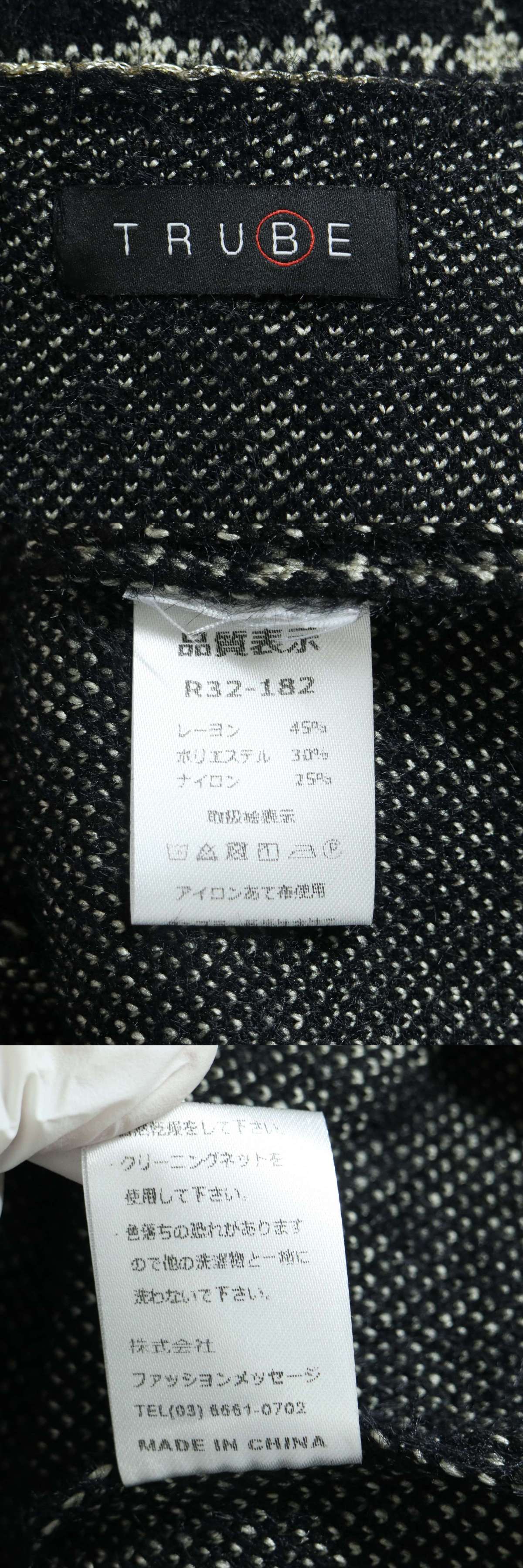 TRUBE トルベ 秋冬 パールボタン★ ツイード チェック カーディガン ノーカラー ジャケット Sz.F レディース 收藏