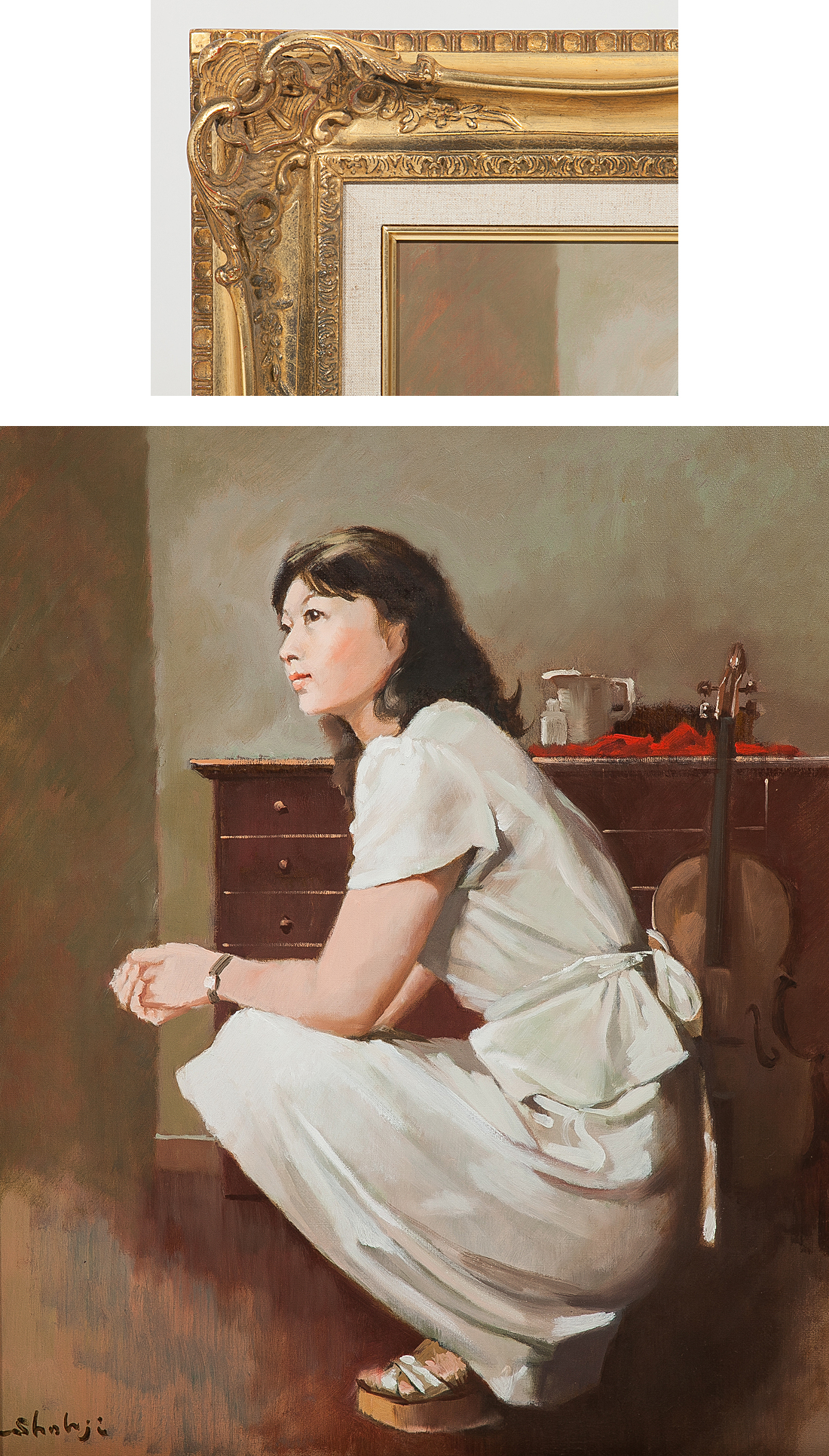 【1on1】真作 上尚司 『室内』 美人画 油彩 キャンバス 8号 真筆保証書付 額装 / 個性的な表現と卓越した画力で女性像を描く人気画家 收藏