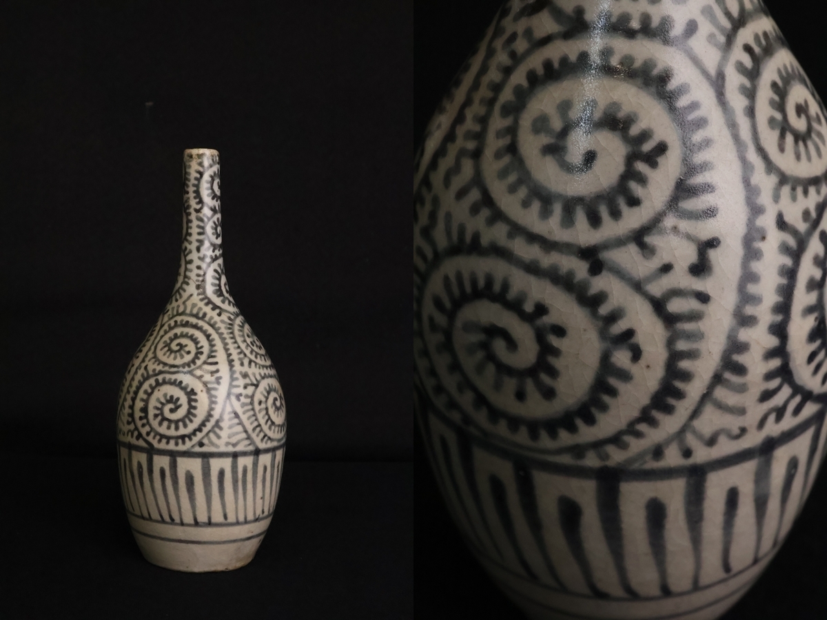 TB526蛸唐草 染付 徳利 高さ約18.5cm 欠け割れ有◇古伊万里/酒器/煎茶道具/花入/花生/花器/床飾/飾壷/時代/骨董/古美術/古道具タグボート 收藏