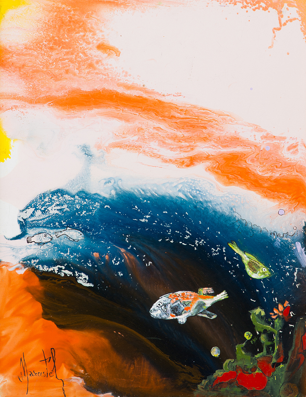 【1on1】真作 マークエステル MARCESTEL 『海の中の散歩』 油彩 キャンバス 5号 額装/個性派巨匠 サロン・ドートンヌアジア代表 永久会員 收藏