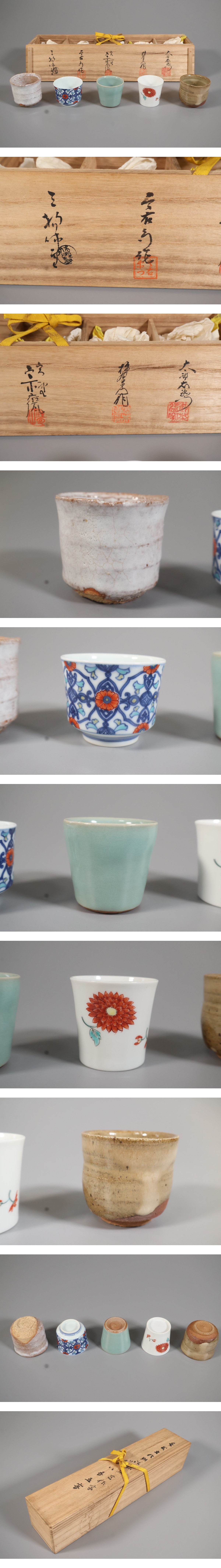 【小】真作保証 無形文化財作家五人作ぐい呑み 全作品本人作 今泉今右衛門 酒井田柿右衛門 中里太郎右衛門 三輪休雪 宇野宗甕 酒器 收藏