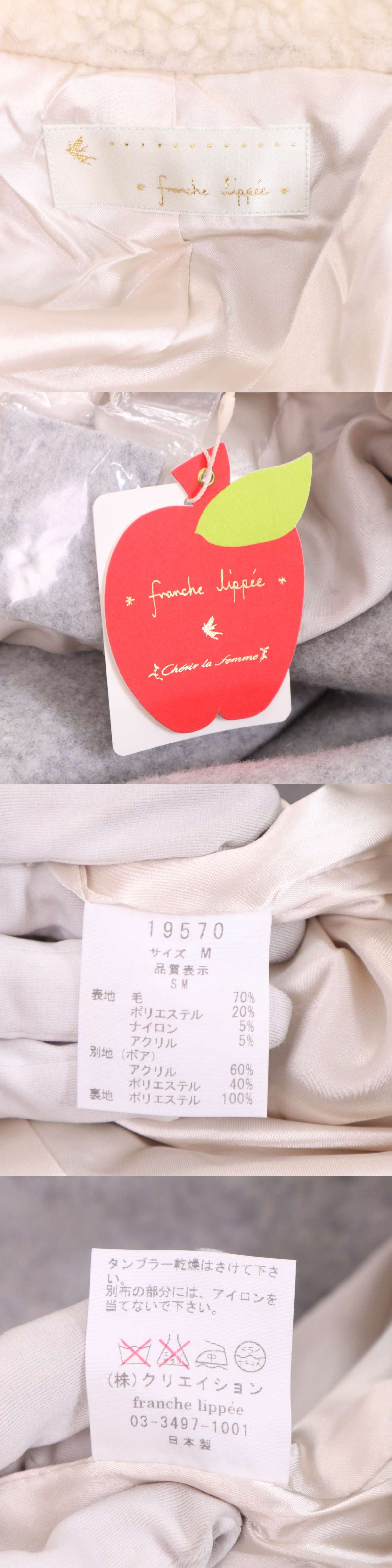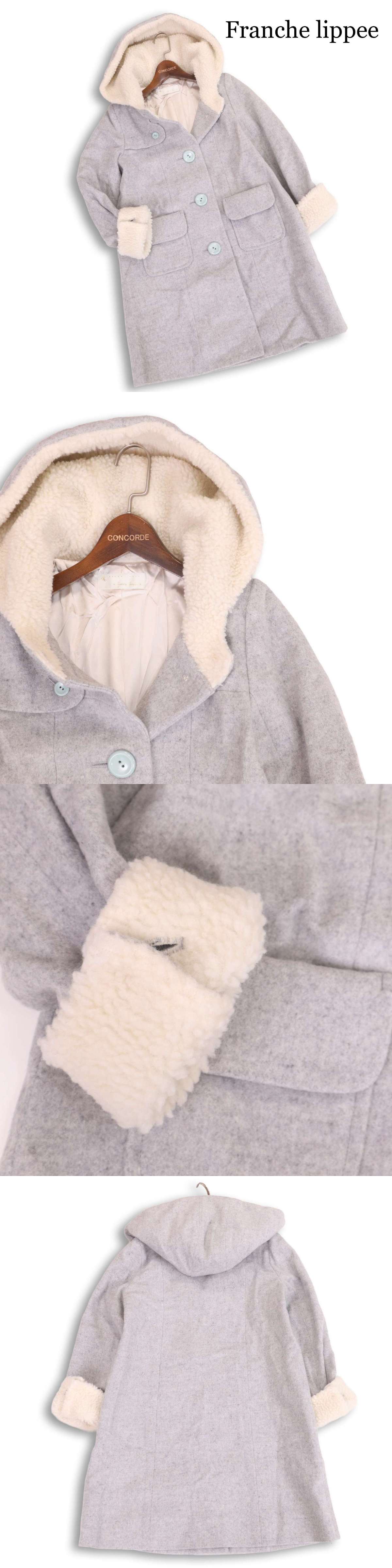 【新品 未使用】 Franche lippee フランシュリッペ 秋冬★ ボア ウール フーディー コート Sz.M レディース グレー 日本製 收藏