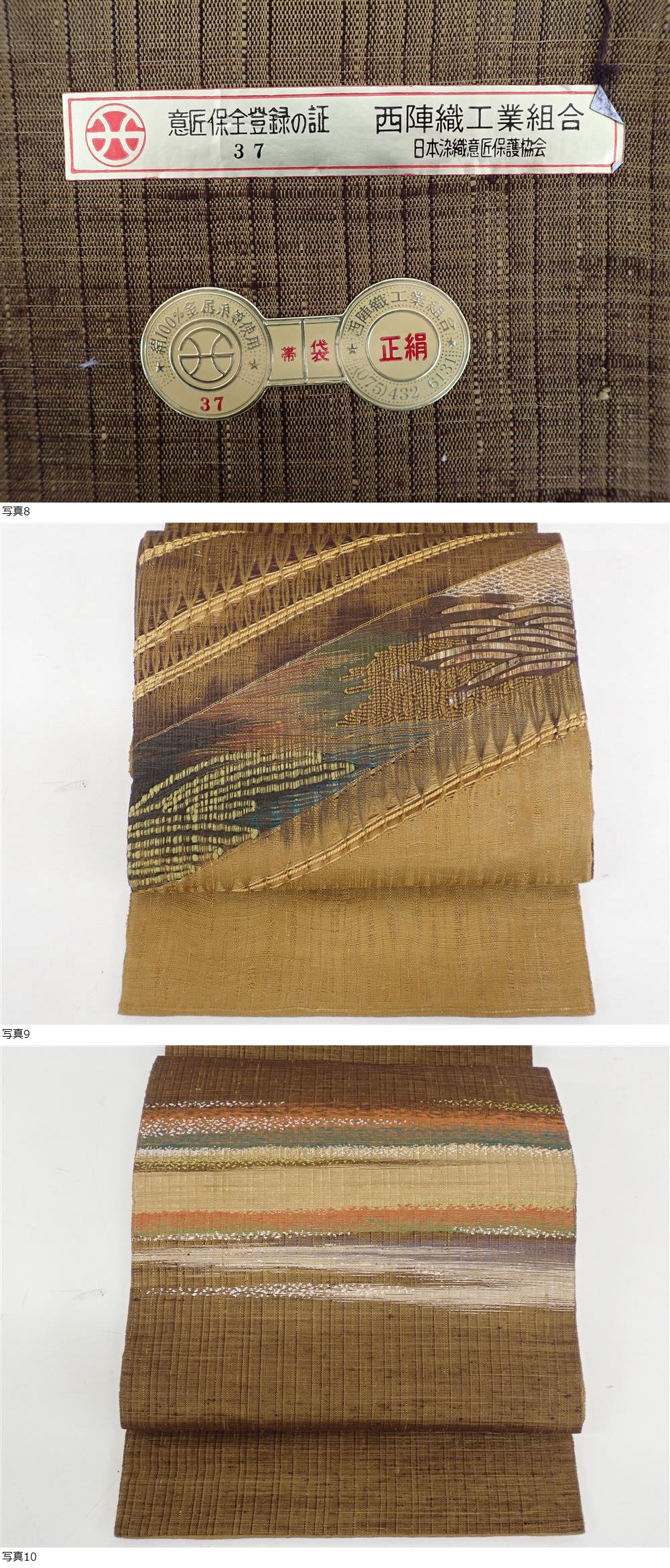 逸品 渡文謹製 西陣 正絹 手織りすくい織 両面袋帯 31cm×450cm 金糸 和装 和服 着物 帯 P01060 收藏
