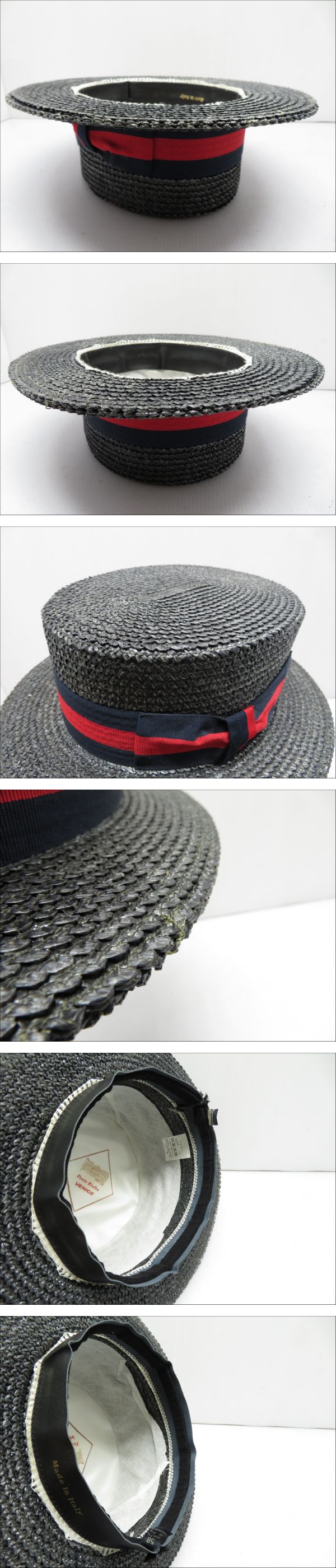 Ponte Rialto VENICE ポンテリアルト ストローハット/カンカン帽/ボーターハット/麦わら帽子 リボン 58 黒 ブラック イタリア製 ムギ100% 收藏