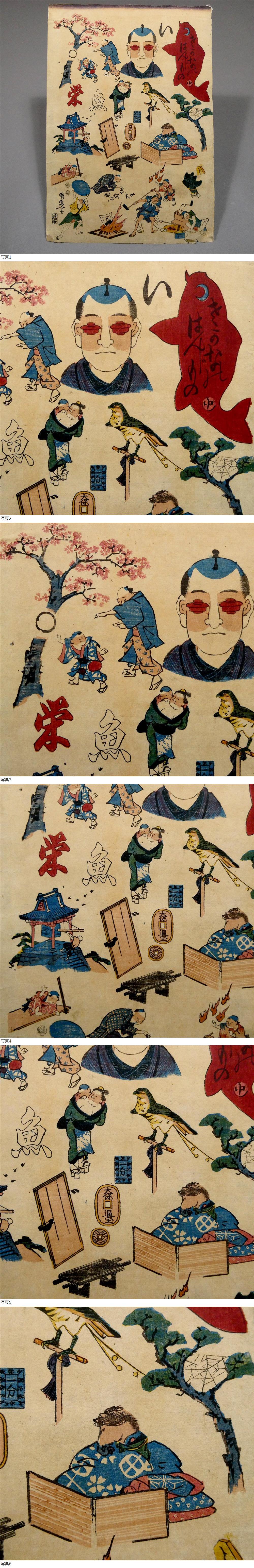 歌川国盛◆江戸期 木版浮世絵 判じ絵◆なぞなぞ 絵解き◆知恵比べ戯画 錦絵◆歌川派 骨董 幕末 歴史資料 当時物 珍品 知育 判じ物 パズル45 收藏