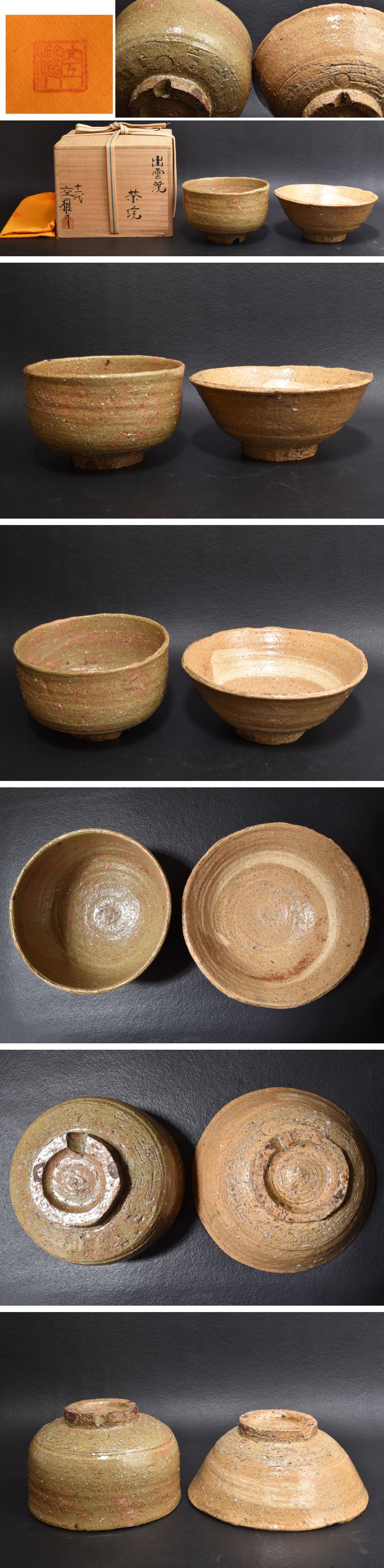 6310 十一代 長岡空権 出雲焼 茶碗 2碗 共箱 收藏