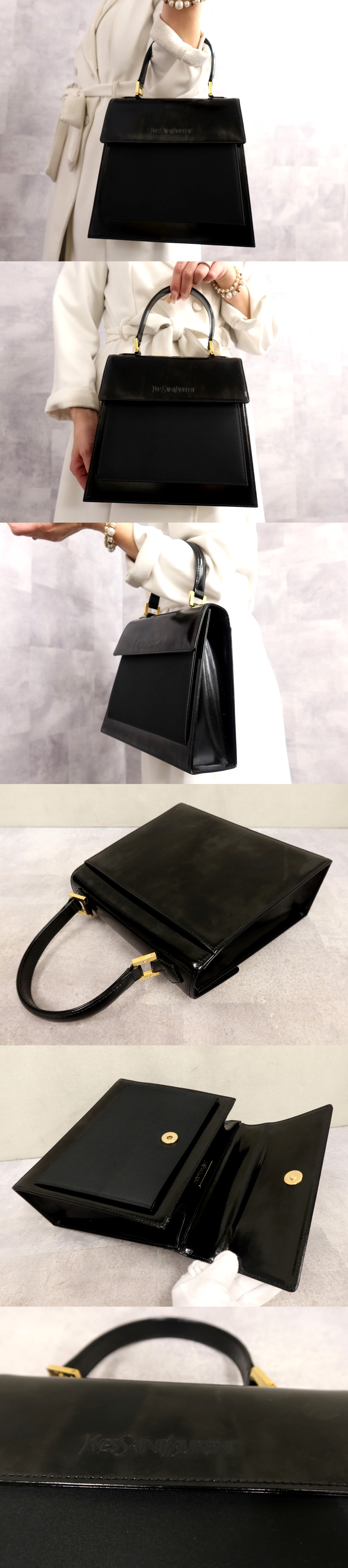 ●超美品●YSL Yves Saint-Laurent イヴ・サンローラン●エンボスロゴ●ナイロン カーフ レザー 本革●ハンド バッグ●黒●G金具●Js65451 收藏