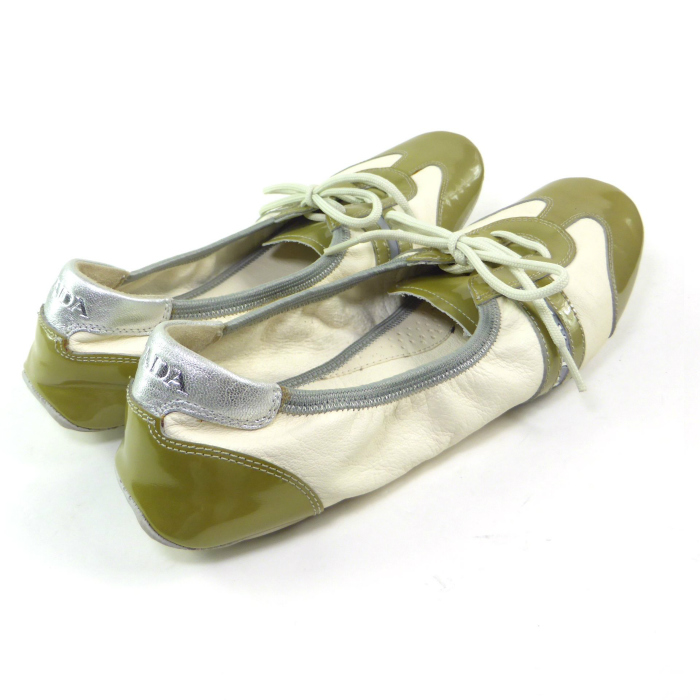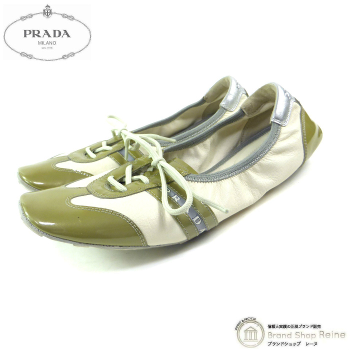 | プラダ(PRADA) プラダスポーツ 3E 4360 レザー バレエシューズ フラット シューズ 靴 #38 グリーン系(中古) |