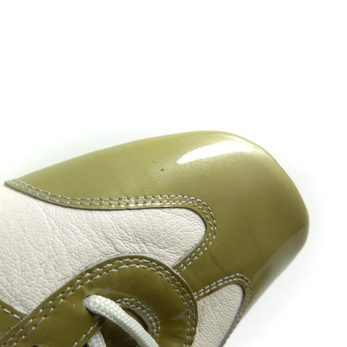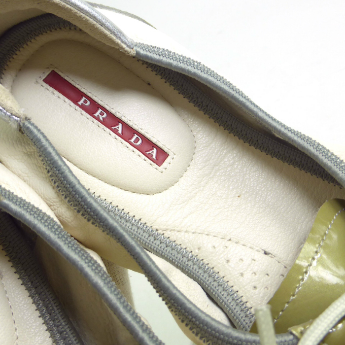 | プラダのパテントレザーを使用したバレエフラットシューズ。 艶感のあるパテントレザーと柔らかなレザーを使用しスポーツルックに仕上がったバレエシューズです。 洗練されたシルエットのトゥにローヒールの歩きやすいエレガントな逸品。 上品な足元の装いとして、カジュアルからフェミニンまで様々なスタイルに合わせてお使い頂けるおススメの靴です。 |