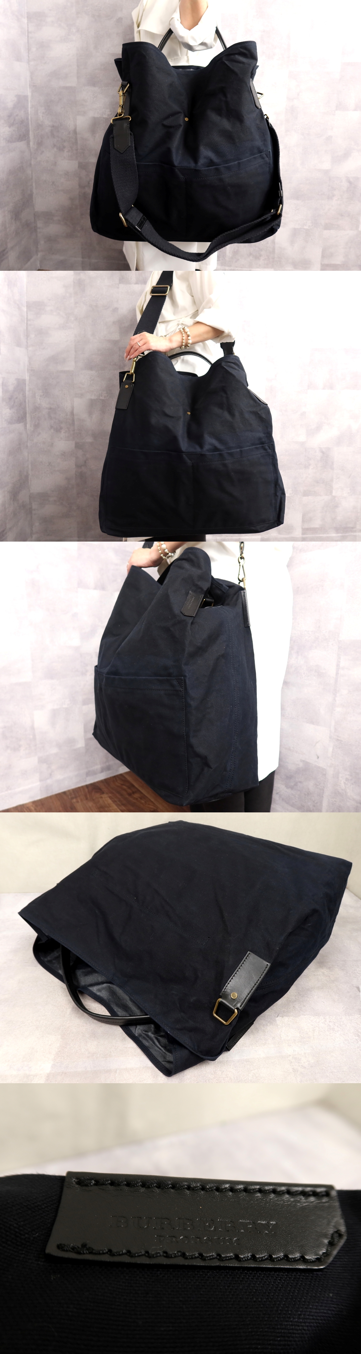 ●超美品●BURBERRY バーバリー●プローサム●ロゴ型押し●キャンバス カーフ レザー●2way トート バッグ●ネイビー●G金具●A4●Js67184 收藏