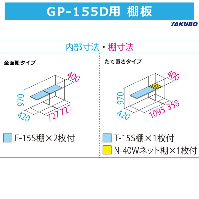 棚タイプ | たて置きタイプ(T-15S棚×1枚・N-40Wネット棚×1枚付き) |