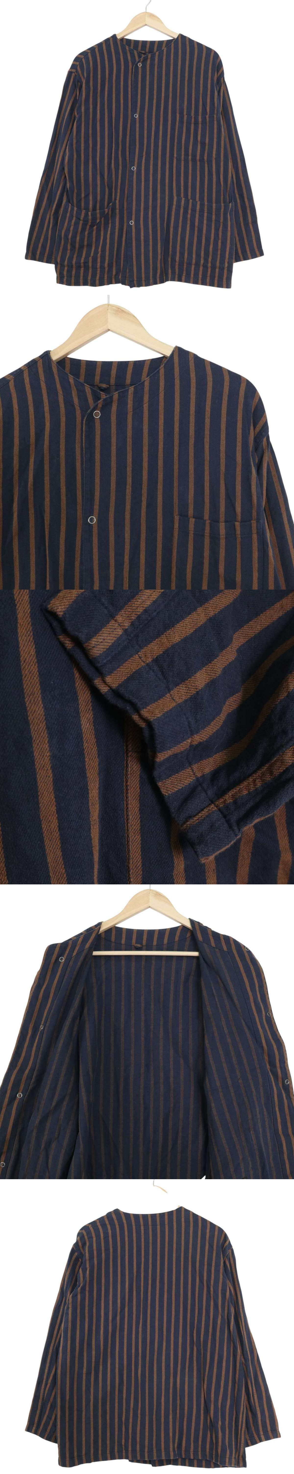 niko and... ニコアンド 春夏 リネン混★ 縦ストライプ ノーカラー シャツ カーディガン風 ジャケット Sz.3 メンズ 紺 E5G02000_4#S 收藏
