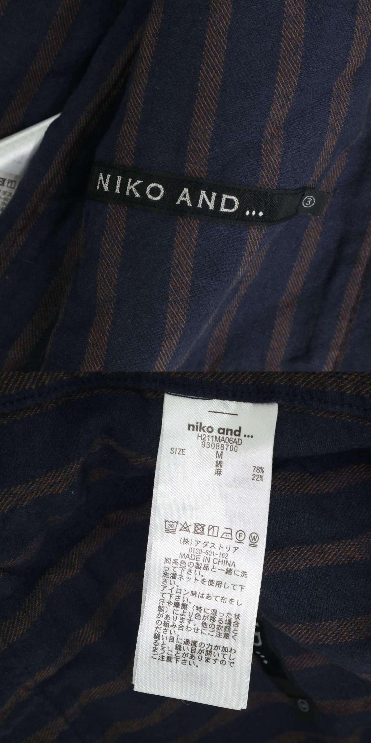 | niko and... ニコアンド 春夏 リネン混★ 縦ストライプ ノーカラー シャツ カーディガン風 ジャケット Sz.3 メンズ 紺 E5G02000_4#S | |||