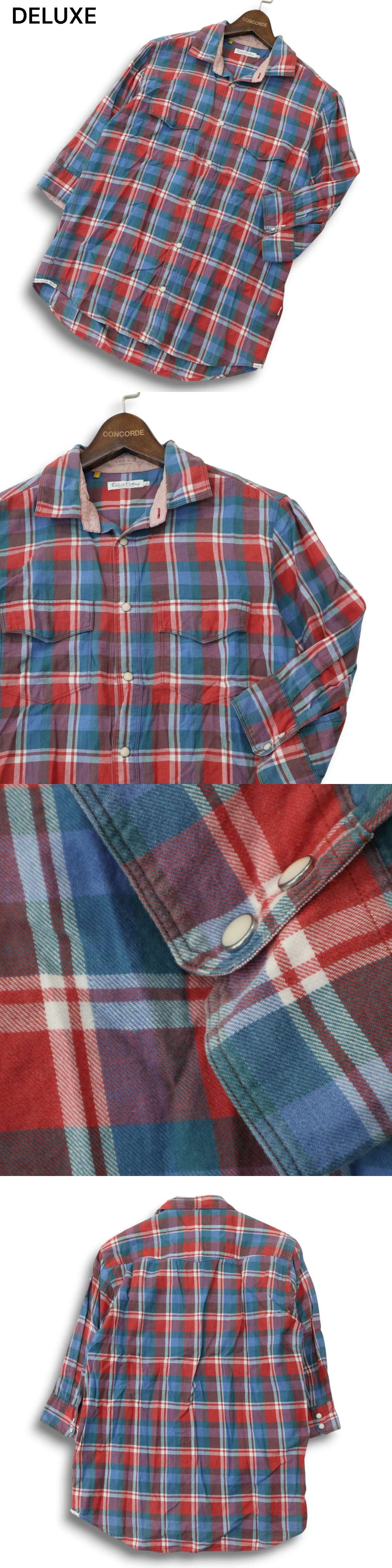 Deluxe Clothing デラックスクロージング 春夏 7分袖★ ワーク チェック シャツ Sz.M メンズ 日本製 收藏