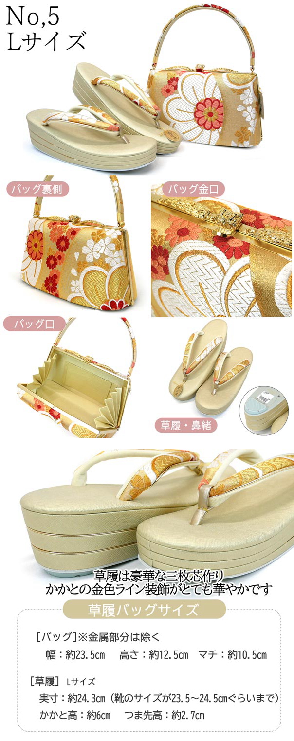 Lサイズ 西陣織帯地 草履バッグセット 世美庵ブランド zb-112 正絹 日本製 成人式 振袖 シルバーゴールド 收藏