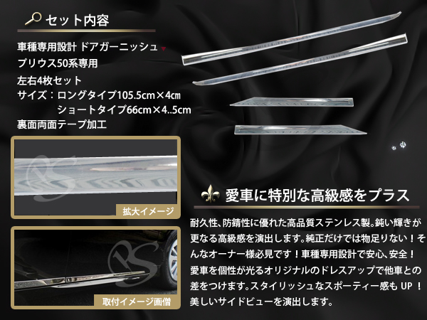 トヨタ プリウス 50系 ZVW50系 メッキドアモール ドアモール メッキサイド カスタム ドレスアップ メッキモール 收藏