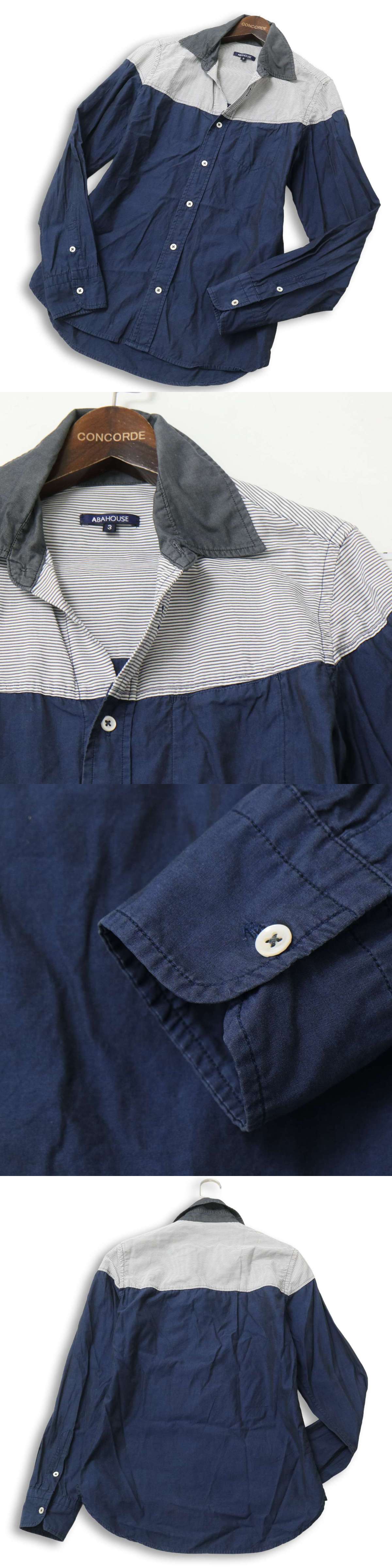 ABAHOUSE アバハウス 通年 切替★ 長袖 プレミアム シャンブレー ボーダー スリム シャツSz.3 メンズ 收藏