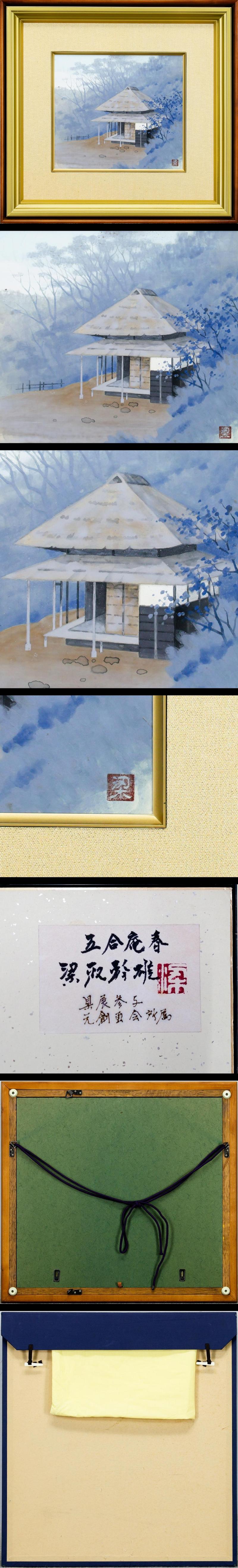 【真作】【WISH】梁取幹雄「五合庵春」日本画 共シール ◆霧青に佇む、五合庵の春 〇師:豊四郎 県展参与 #25122630 收藏