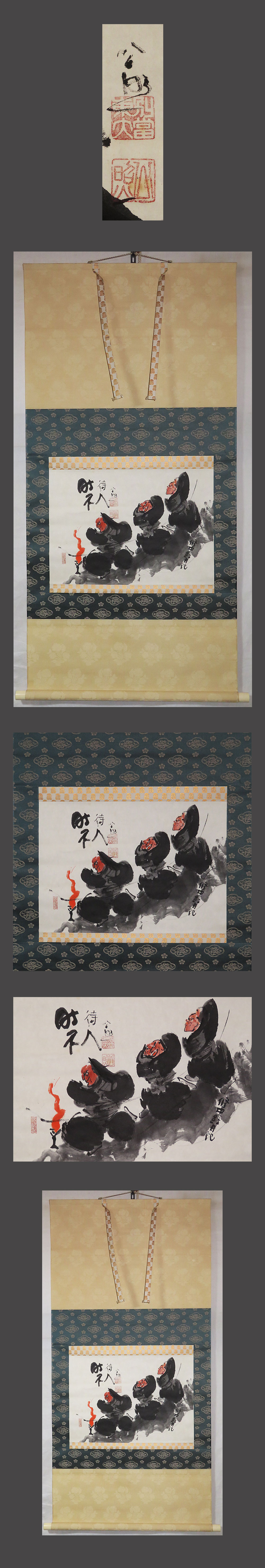 ・掛軸の軸先ですが、細心の注意を払って梱包しておりますが、 配送中の振動・気温・経年劣化等で外れてしまうことがあります。 軸先の外れは、破損ではございませんので、返品の対象にはなりません。 大変お手数ですが、お客様ご自身での修復をお願い致します。 ・添付写真の画像と説明文でご理解頂ける方、ご入札を宜しくお願い致します。 ・添付写真の画像は撮影の光度により、現物と若干の色合いの相違が生じる事があります。 ・添付写真の画像は受取完了のご連絡を頂いた後に速やかに消去しますのでご了承下さい。 ・土・日・祝日はお休みさせて頂きますので、商品発送は、月曜日以降になります。 ・祝日の場合は、翌日の平日以降の発送になります。 ・土・日・祝日は、メールの返信が若干遅れる事がございます。どうか、ご了承下さい。 ・時間的に余裕がない場合などでお答えが出来ない事も多々有ります。 ご不明な点は落札日前日までに早めにご質問下さい。 ・商品トラブルがあった場合は、直ちにご連絡下さい。 お取引に付きましては迅速・丁寧に対応させて頂きます。 ・落札後、できるだけ2日以内に連絡(返信)を頂ける方、 5日以内にご入金できる方の御入札を御願い致します。 ・新規の方や評価の総評が悪い方は当方の判断にて、入札取り消しを行う場合がございます。 ・お取引に付きましては、迅速、丁寧に対応致しますのでどうぞ、宜しくお願い致します。 ・古美術品や古物や古書画の出品が多いため、神経質な方がご入札される場合は、 ご自身が納得の行く価格でご入札ください。 ・万一、ヤフーのシステム障害により、公正なオークションができなかったまま終了し、 落札者様にご落札された場合は、当方より取引ナビで取引中止のご連絡を致します。 その時は、どうか、ご了承をお願い致します。 ・終了当日・直前の入札の取り消しは、 トラブルの原因となりますのでご遠慮お願い致します。 ・入札後の取り消し(キャンセル)は行っておりません。 ・落札後のキャンセル・返品はお断りしてます。 入札前によくご確認頂き、間違いのないようにご注意下さい。 |