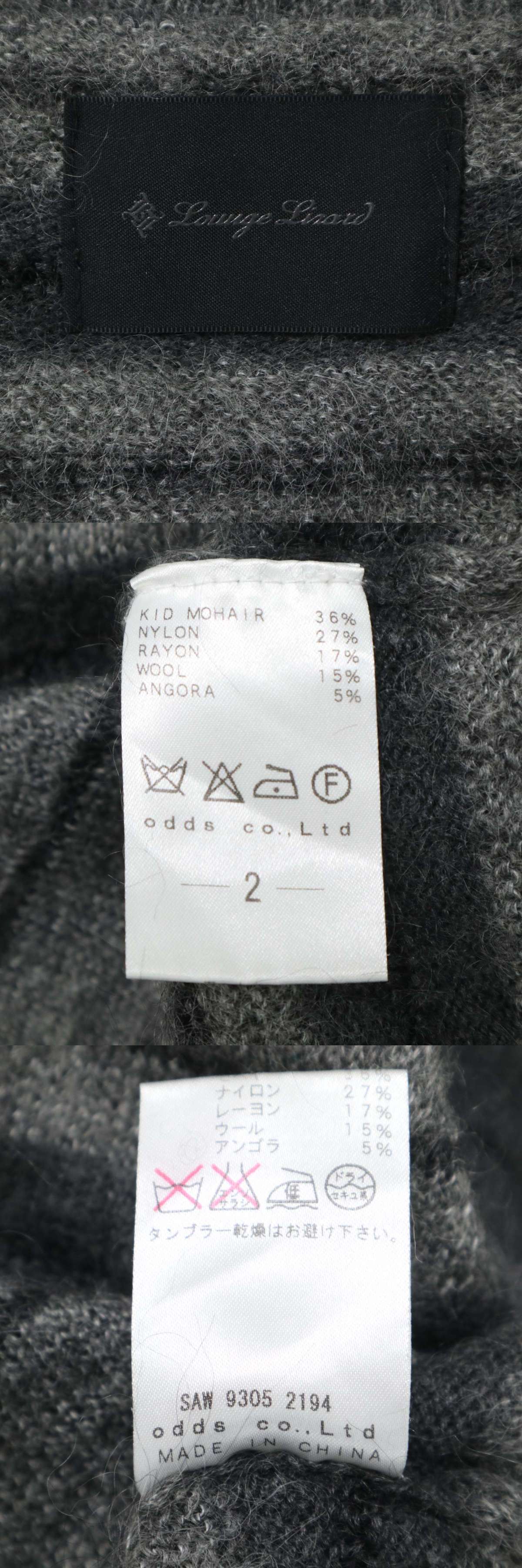 LOUNGE LIZARD ラウンジリザード モヘヤ アンゴラ ウール混★ ボーダー Vネック ニット セーター Sz.2 メンズ グレー 收藏