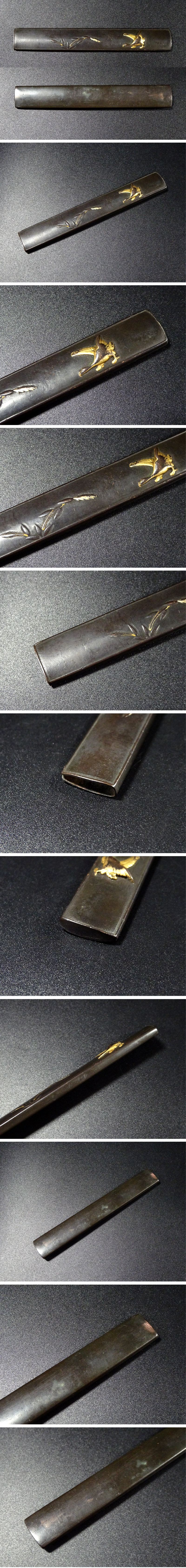敬逢 秀逸 刀装具 水鳥に水草図小柄 無銘 古作 赤銅魚子地 据紋高彫 金色絵 TSHB2 【検鐔鍔太刀拵え縁頭目貫 收藏