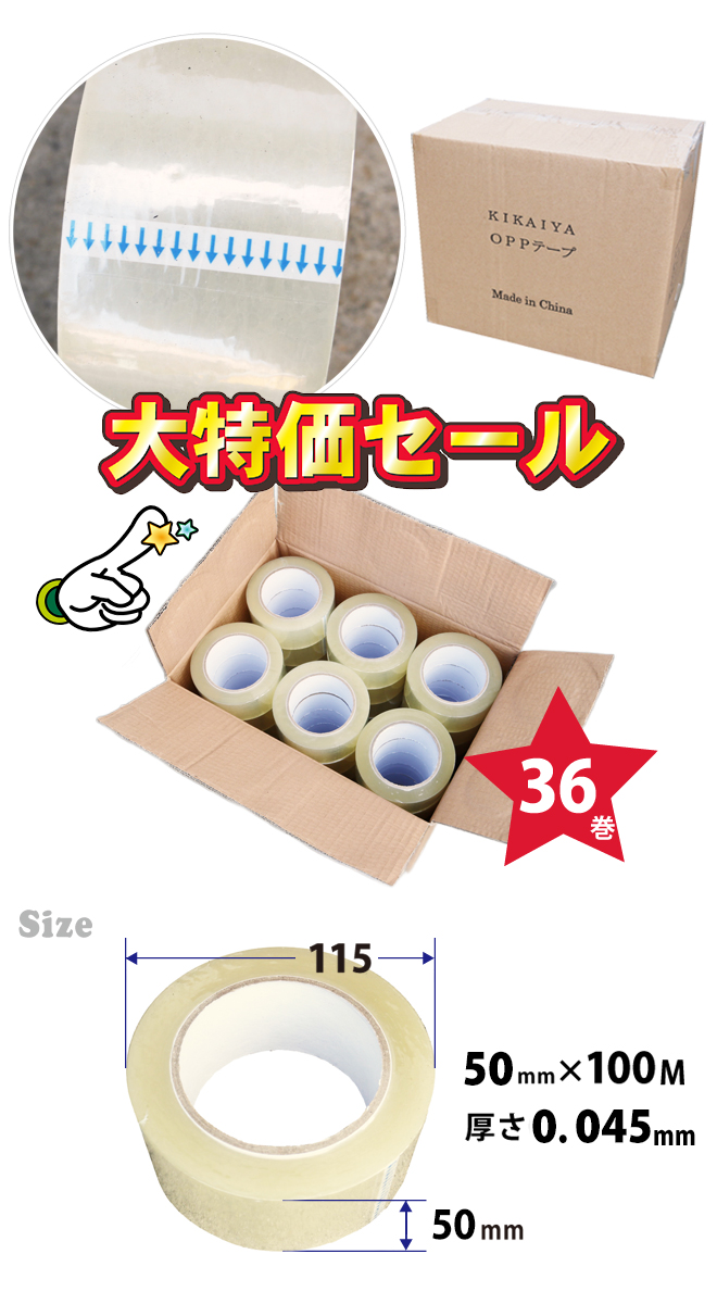 OPPテープ 50mm×100M 36巻セット 透明テープ 梱包テープ 幅50mm×長さ100m×厚さ0.045mm 收藏