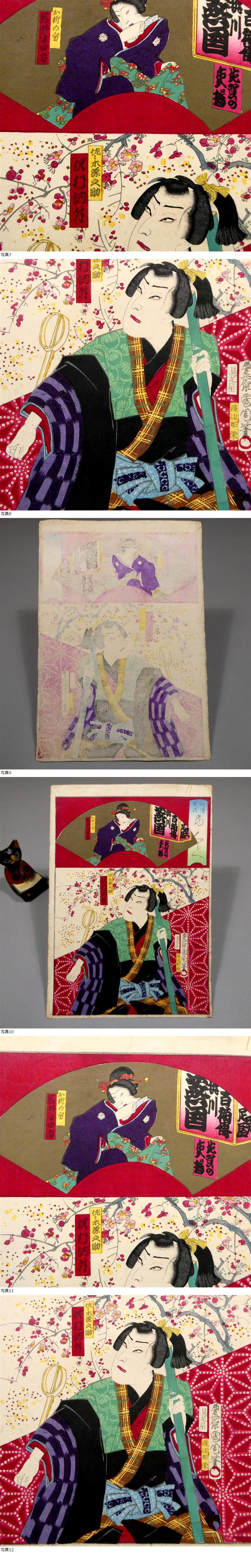 豊原国周◆明治時代 木板浮世絵「俳優落語 当くらべ」岩井半四郎 澤村訥升◆光る!国周の得意技 大胆 モダンな「枠割り」■歌舞伎 芝居絵 5 收藏