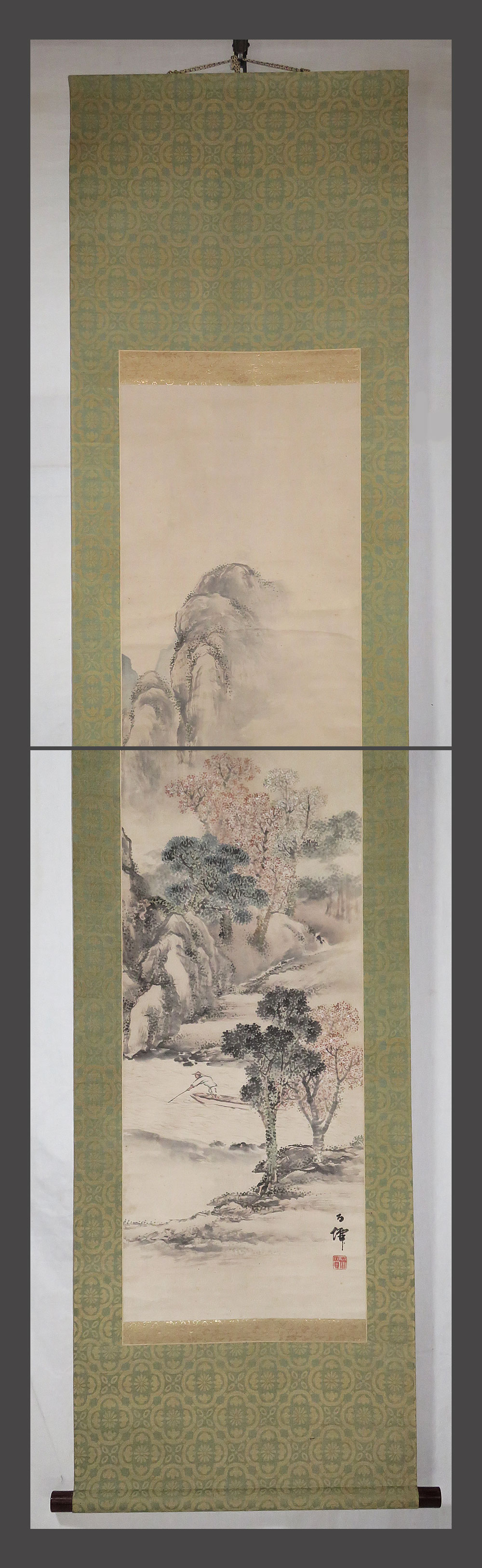 【adva】【真作】■鈴木松年■春景山水之図■高橋杏華鑑定箱■初号百僊■肉筆■掛軸■掛け軸■日本画■ 收藏