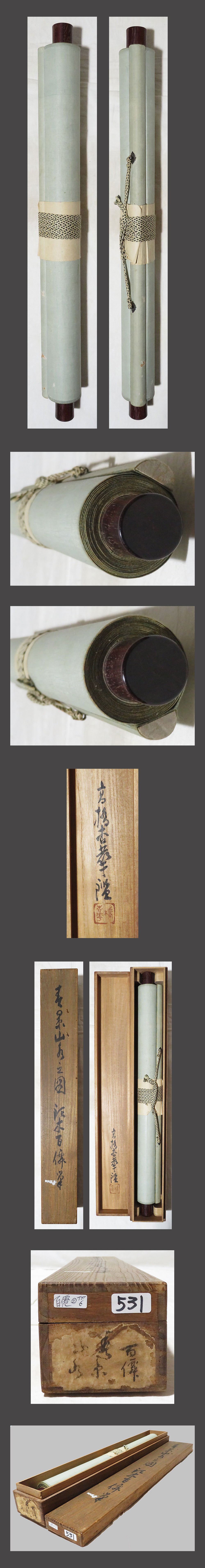 ・掛軸の軸先ですが、細心の注意を払って梱包しておりますが、 配送中の振動・気温・経年劣化等で外れてしまうことがあります。 軸先の外れは、破損ではございませんので、返品の対象にはなりません。 大変お手数ですが、お客様ご自身での修復をお願い致します。 ・添付写真の画像と説明文でご理解頂ける方、ご入札を宜しくお願い致します。 ・添付写真の画像は撮影の光度により、現物と若干の色合いの相違が生じる事があります。 ・添付写真の画像は受取完了のご連絡を頂いた後に速やかに消去しますのでご了承下さい。 ・土・日・祝日はお休みさせて頂きますので、商品発送は、月曜日以降になります。 ・祝日の場合は、翌日の平日以降の発送になります。 ・土・日・祝日は、メールの返信が若干遅れる事がございます。どうか、ご了承下さい。 ・時間的に余裕がない場合などでお答えが出来ない事も多々有ります。 ご不明な点は落札日前日までに早めにご質問下さい。 ・商品トラブルがあった場合は、直ちにご連絡下さい。 お取引に付きましては迅速・丁寧に対応させて頂きます。 ・落札後、できるだけ2日以内に連絡(返信)を頂ける方、 5日以内にご入金できる方の御入札を御願い致します。 ・新規の方や評価の総評が悪い方は当方の判断にて、入札取り消しを行う場合がございます。 ・お取引に付きましては、迅速、丁寧に対応致しますのでどうぞ、宜しくお願い致します。 ・古美術品や古物や古書画の出品が多いため、神経質な方がご入札される場合は、 ご自身が納得の行く価格でご入札ください。 ・万一、ヤフーのシステム障害により、公正なオークションができなかったまま終了し、 落札者様にご落札された場合は、当方より取引ナビで取引中止のご連絡を致します。 その時は、どうか、ご了承をお願い致します。 ・終了当日・直前の入札の取り消しは、 トラブルの原因となりますのでご遠慮お願い致します。 ・入札後の取り消し(キャンセル)は行っておりません。 ・落札後のキャンセル・返品はお断りしてます。 入札前によくご確認頂き、間違いのないようにご注意下さい。 |