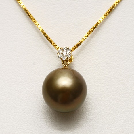 タヒチ黒蝶真珠パールペンダントトップ 11mmUP ライトグリーンカラー K18製/D0.07ct 收藏