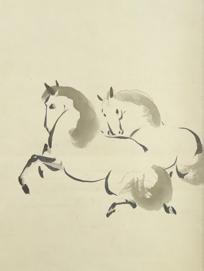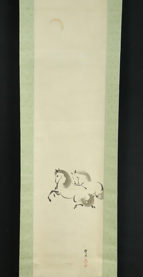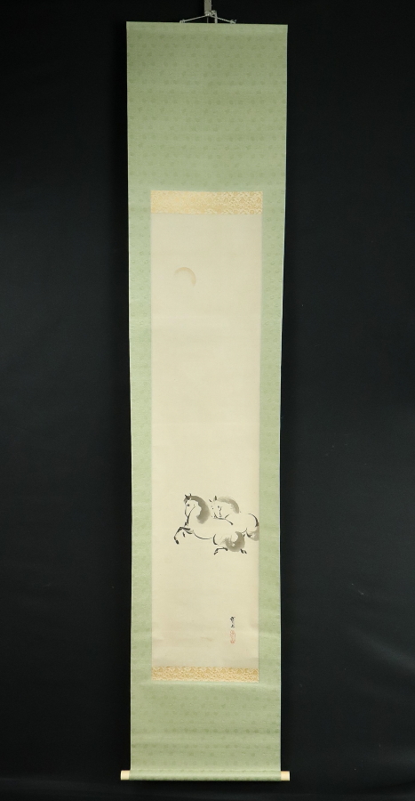 12995■【真作】木村武山 【収集家旧蔵品】 月下春駒図 共箱 茨城の人 川端玉章師事 円山四条派 掛軸 收藏