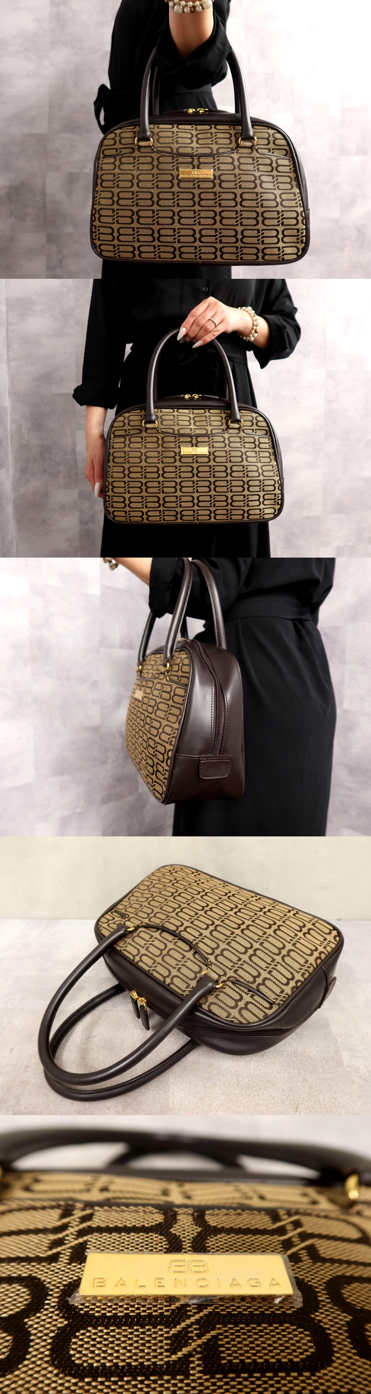 ●超美品●BALENCIAGA バレンシアガ●BBロゴ●キャンバス カーフ レザー 本革●ハンド バッグ●ブラウン系●G金具●ヴィンテージ●Js67082 收藏
