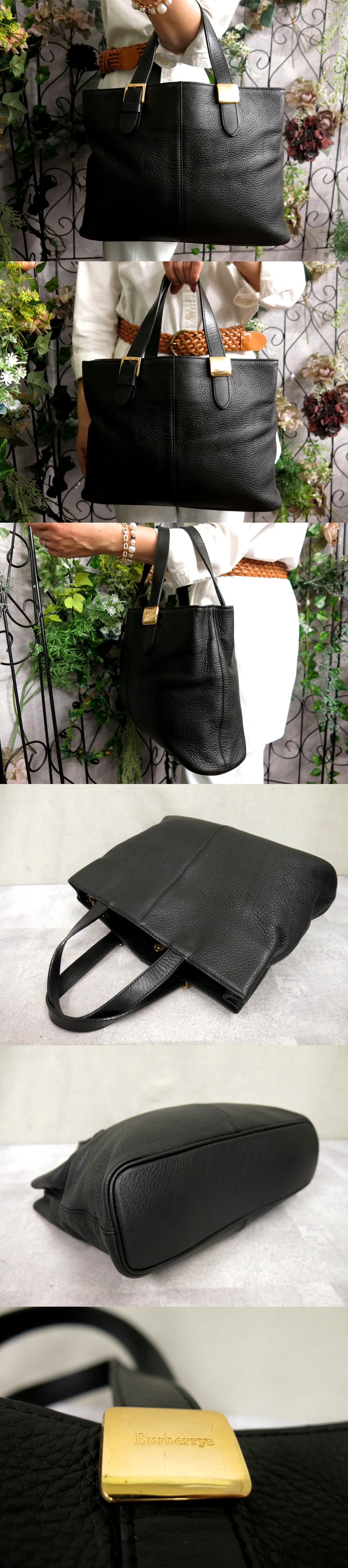 超美品●BURBERRY バーバリー●内ノバチェック●ロゴプレート●カーフ レザー 本革●トート ハンド バッグ●黒●ゴールド金具●B5●Js56845 收藏