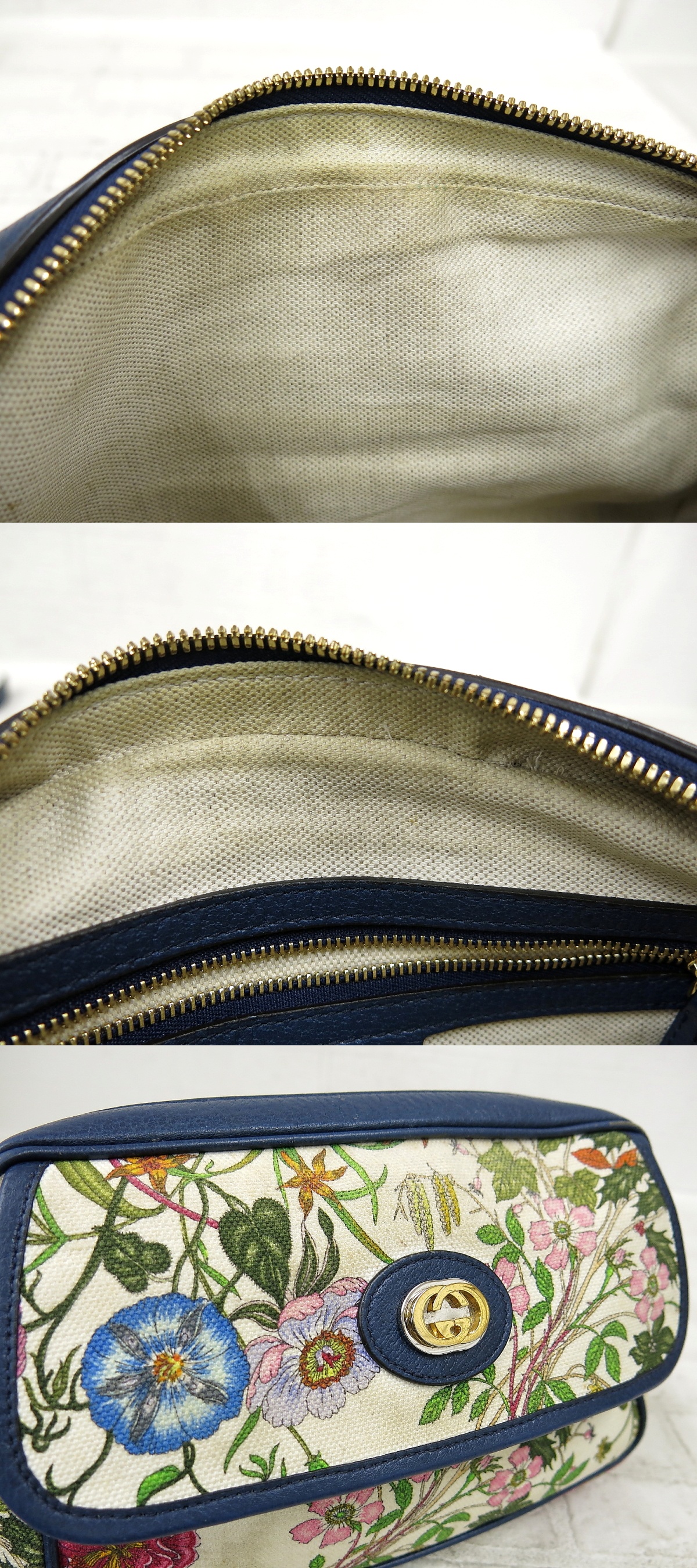 ◆美品◆GUCCI オールド グッチ◆フローラ◆キャンバス カーフ レザー 本革◆ショルダー バッグ◆ネイビー系 G金具◆イタリア製◆A11732 收藏