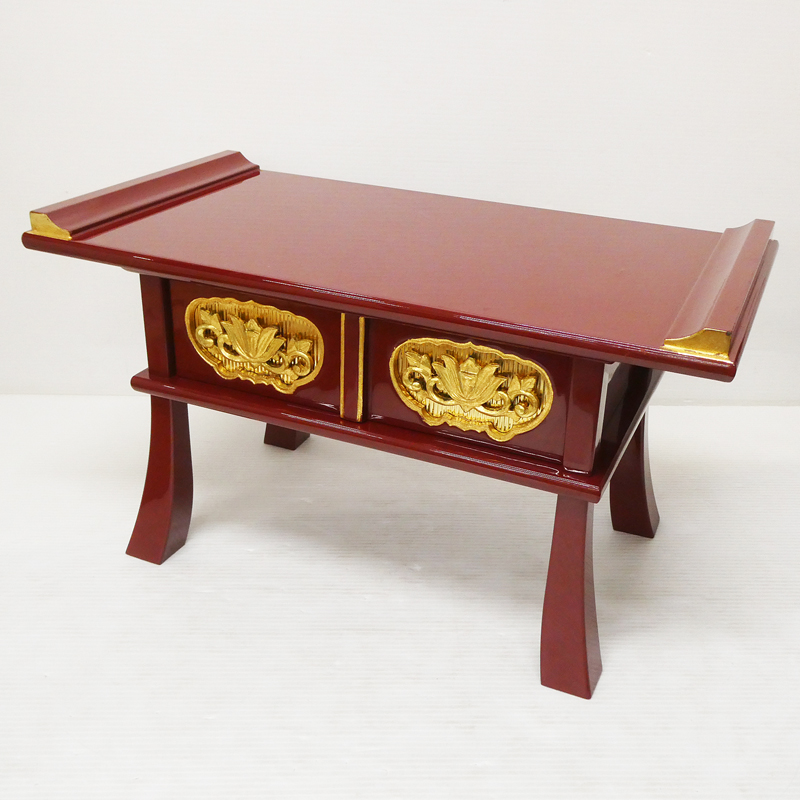 ♯8) 希少! 中京型 経机 朱塗り 金箔押 蓮華彫入 前幅約1尺6寸 引き出し1杯付き 木製 経台 経卓 高級仏具 在家用仏具 寺院用仏具 收藏