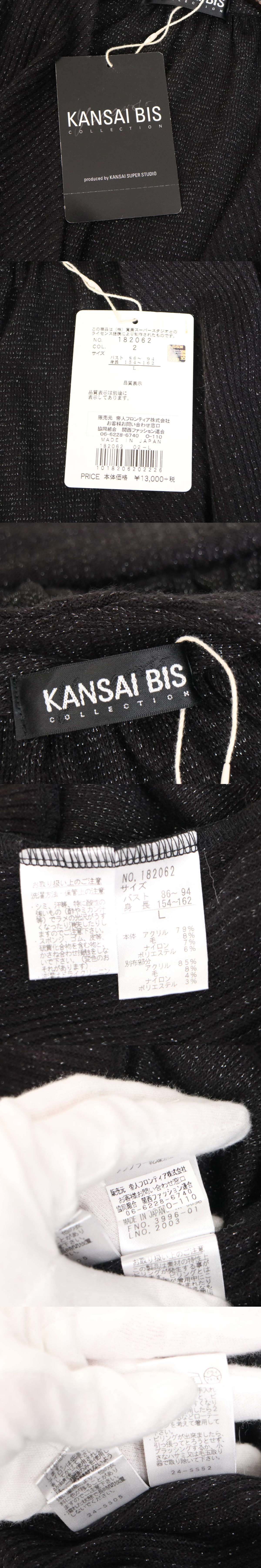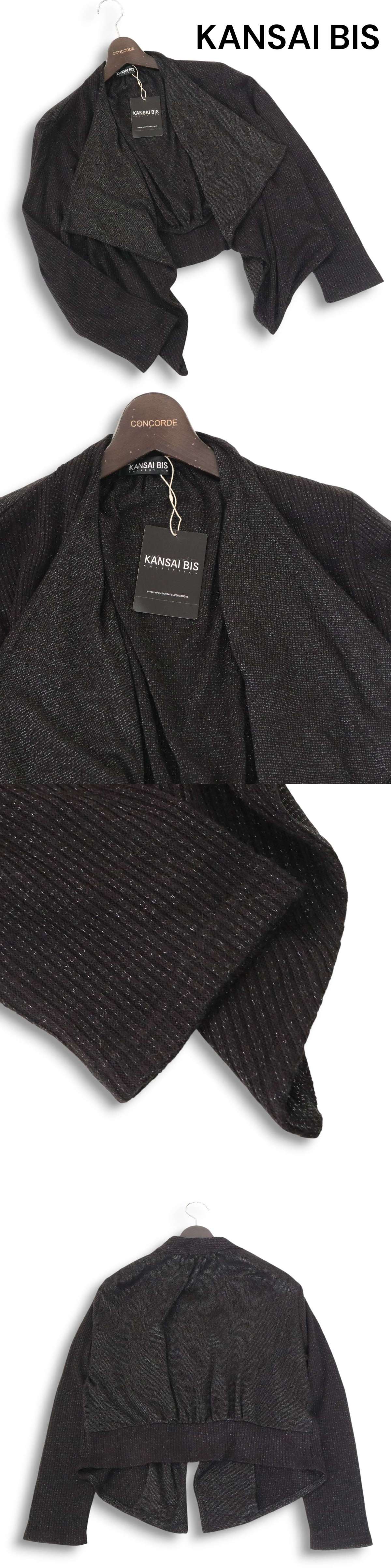 【新品 未使用】 KANSAI BIS カンサイ ビス 秋冬 ラメ リブ ニット カーディガン ボレロ 羽織り Sz.L レディース 黒 收藏