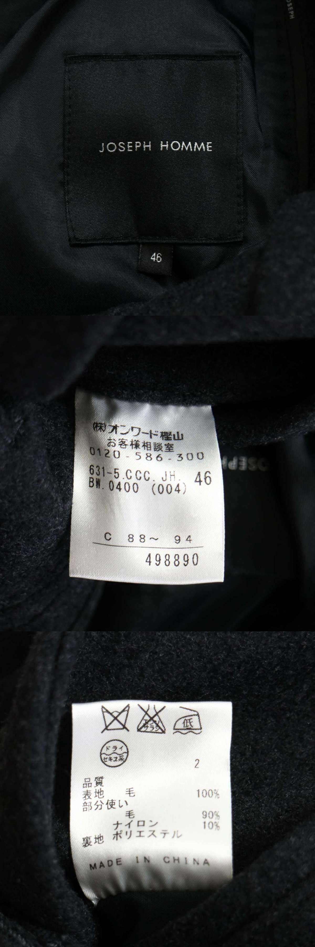 JOSEPH HOMME ジョセフ オム 秋冬 メルトン ウール★ ステンカラー コート Sz.46 メンズ グレー 收藏