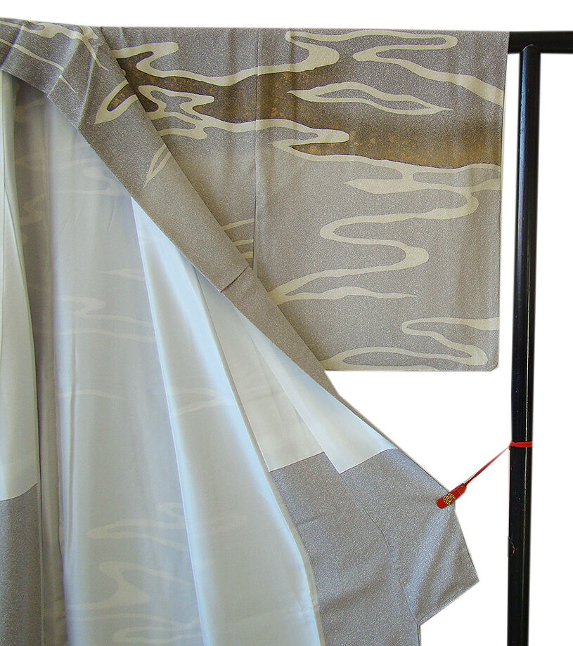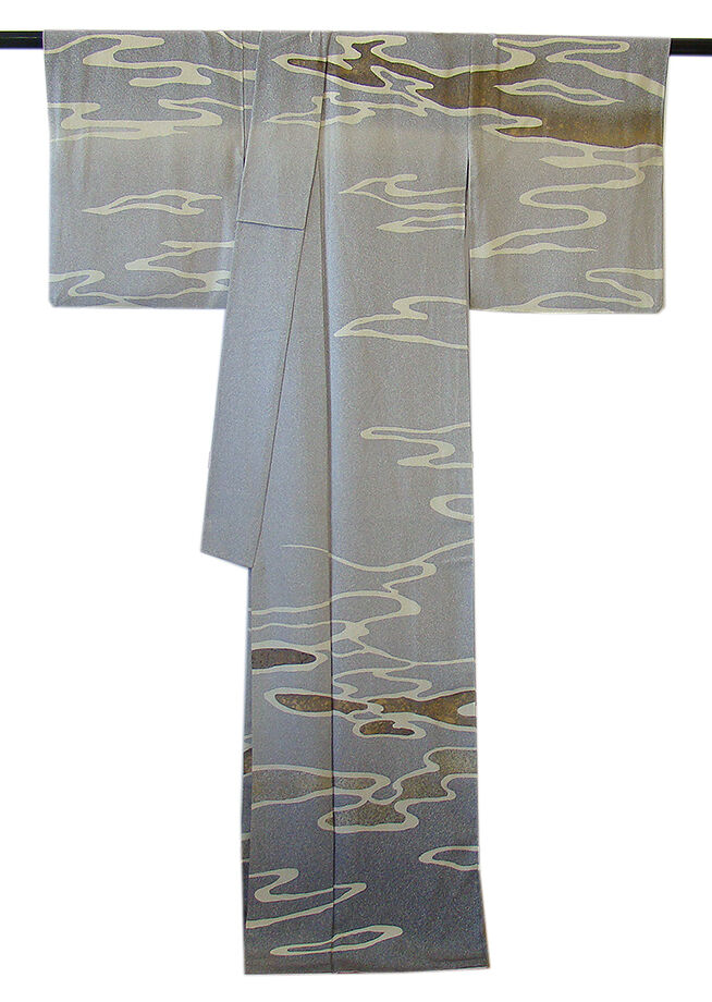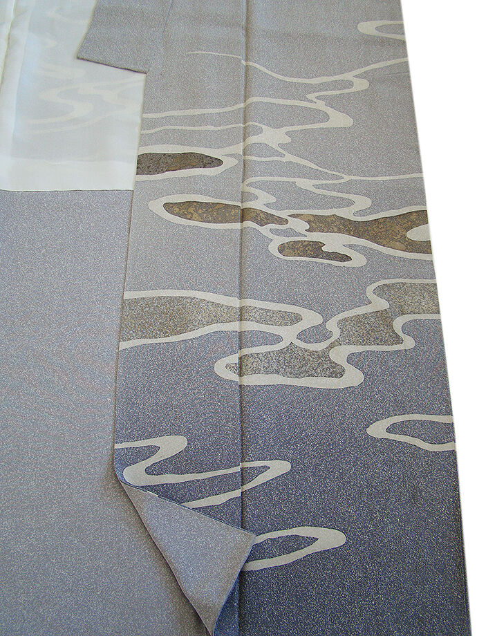 | 商品説明 | こちらのお品は「袷」ですので10月から5月までお召頂ければと思います。 とてもしなやかで柔らかな手触りの着心地良い重めのちりめん地の生地、 淡い灰色地に肩と裾にかけて鼠色ぼかしに灰白色のたたき彩に象牙色の染柄に金彩加工染、 八掛は暁鼠色に灰白色のたたき染(正絹)、幅広い年代の方にお召頂けます。 |