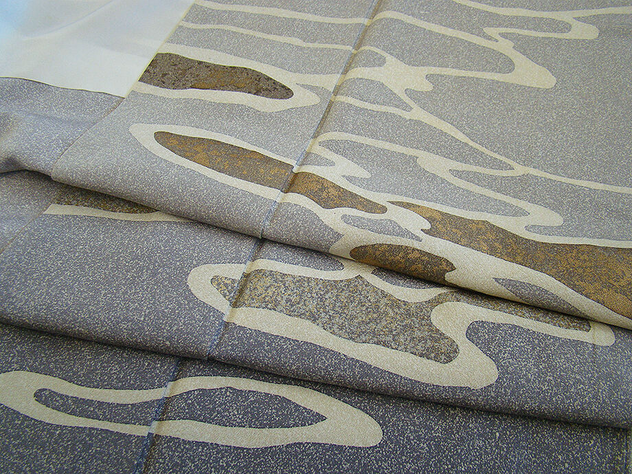 | ちょっと一言 | 落ち着きある色彩の中にも存在感溢れる着物姿を演出する粋なたたき染の上品な訪問着です。 帯や小物次第で様々な表情をお愉しみ頂ける逸品です。 |