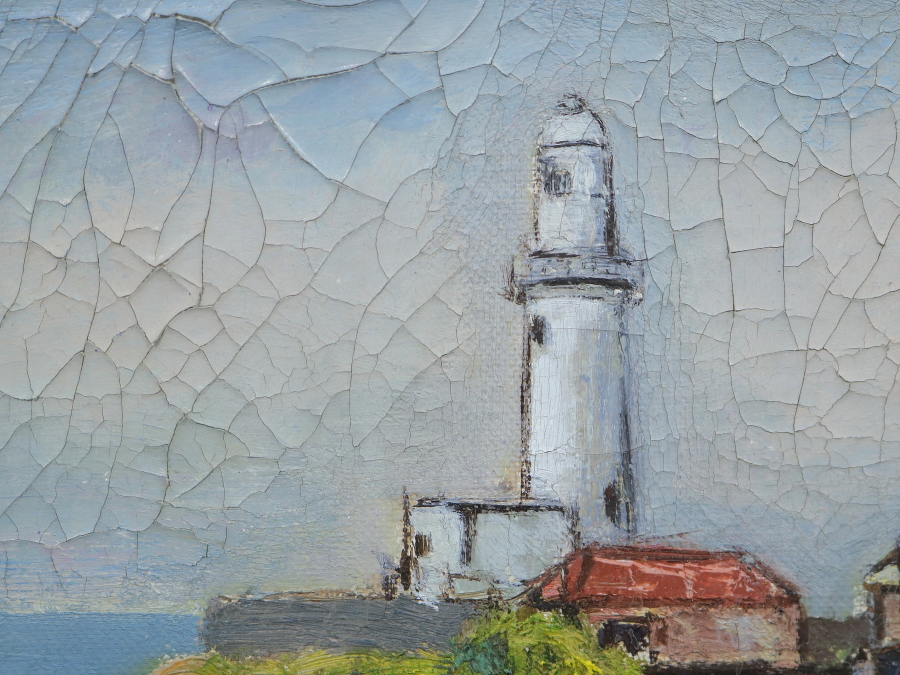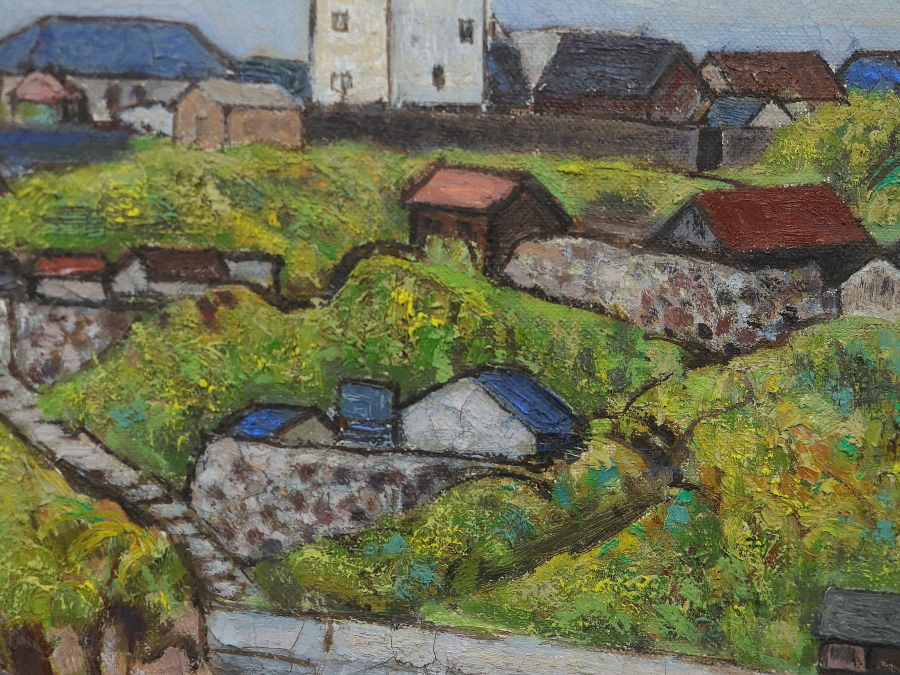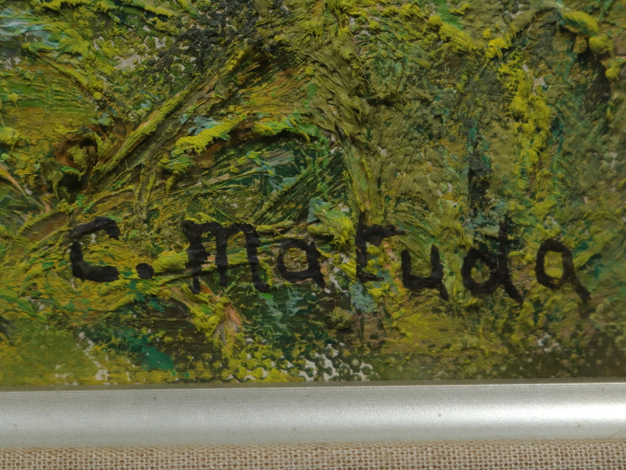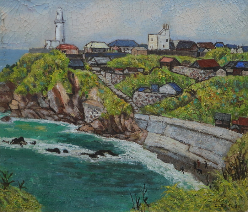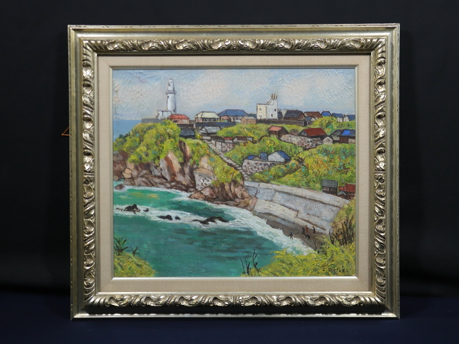 11909■【真作】松田忠一 「大王崎」 キャンバス 油彩 共シール 洋画家 一水会常任委員 島根の人 額装 收藏