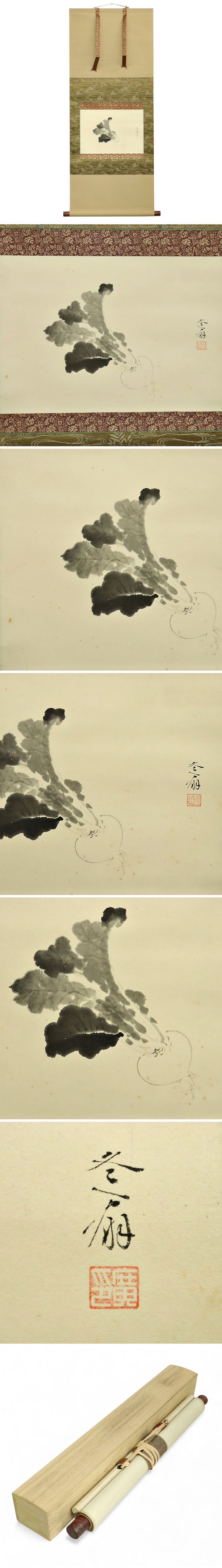 真作保証 園木冬扇 カブ図 紙本 箱 備後 掛軸 書画 骨董品 美術品 1458sqN 收藏