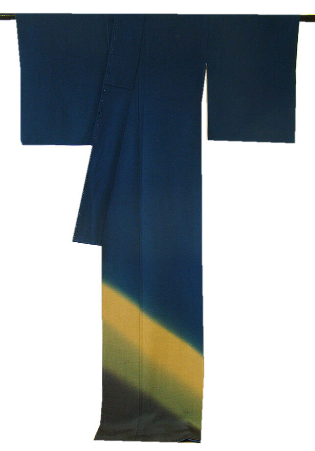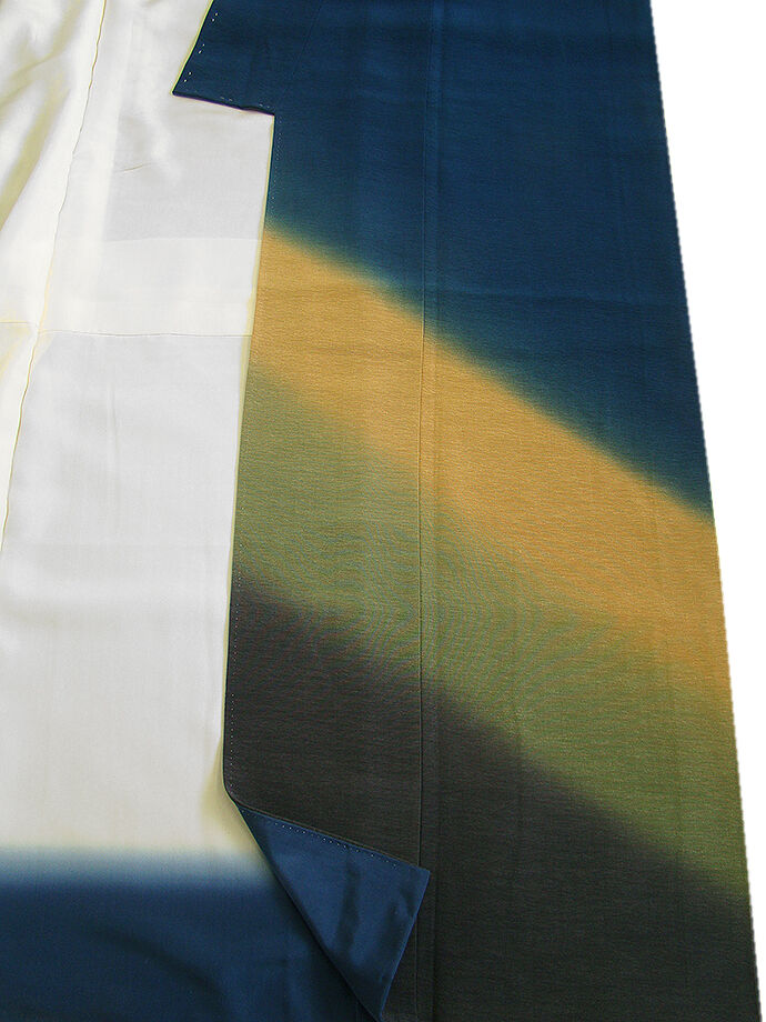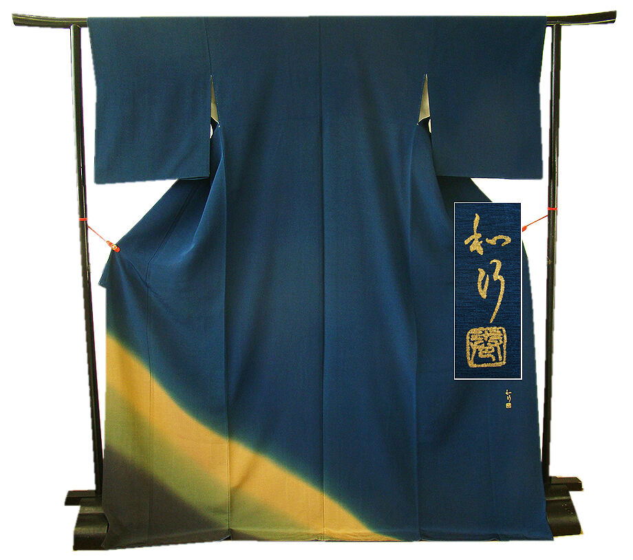 | 商品説明 | こちらのお品は「袷」でございますので、10月~5月までお召頂ければと思います。 とてもしなやかで滑らかな柔らかで着心地良い重めの極上ちりめん地の生地、 青藍色地に裾にかけて金茶、薄抹茶、墨色の三段ぼかし染、 八掛は紺瑠璃色(正絹)、作家の落款入り、幅広い年代の方にお召頂けます。 |