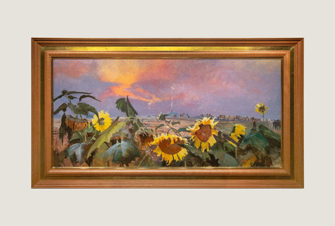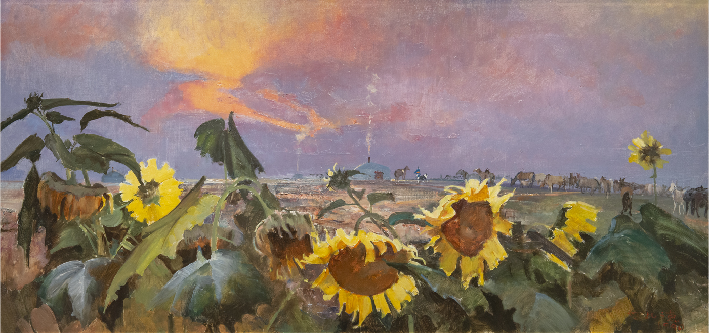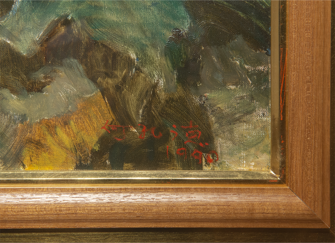 何孔德 1990年作 巴音庫侖之晨 油画 額装 真作保証 中国 近現代絵画 現代アート 收藏