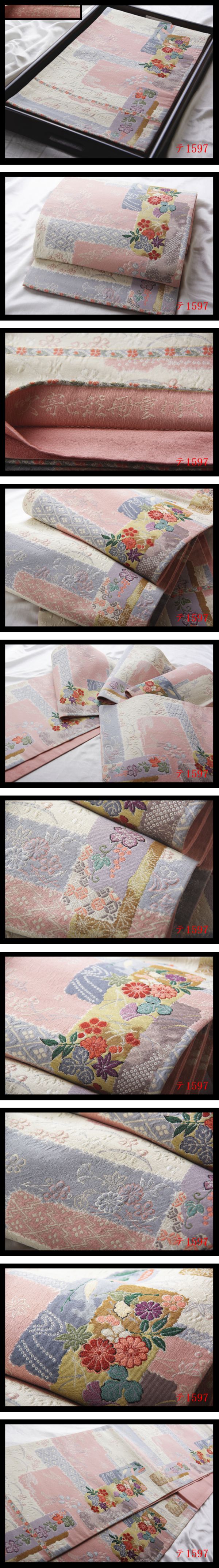中々上手く撮影出来ないですが、現物は画像以上に、帯の色彩、質感・柄行きなど大変美しい高級品です 職人の技が光る逸品です。 大胆なデザイン★職人独自巧み技 精緻な意匠表現重厚感際立つ美術帯の作品 ★職人の感性と細やかな巧み技★織細な技術とで綾なされた逸品★きめ細かな織が立体感、見る角度によって色んな表情、 織の創作性に富んだ意匠センスが魅力的細緻極まる織り味で表現された豪華な高級感に満ち溢れた日本情緒が匂い立つ意匠の格調高い帯姿を纏う帯です。 優美な意匠はとりわけ華麗な和の真髄を表し 非常に洗練された紋を取り入れた意匠は見る者を圧倒し、ひと際華やかで美しい、堂々とした存在感が漂います。 地色の美しさもまた格別です。文様に使われている様々な色糸も、それぞれに色そのものが上品で美しく、 見ていても飽きないほどうっとりするような洗練された色柄が秀逸です。 繊細な大変上質な高級織物の風合いの良さが息づいた日本独自の古典伝統美 とても綺麗な色い格調超高い★高級帯 お好きな方・お探しでした方は是非この機会にご検討ください。 優美な意匠があしらわれた袋帯です 吉祥の気配漂う意匠をお楽しみください、 かっこよくエレガントな雰囲気も期待できます 高価な高級袋帯はこれより低価で出品する事まずございません、早い者勝ち 同じお品物は二度と出回らない限定の出品で御座いますのでお見逃し無く. 他でも販売していますので、予告なく出品を取り消す場合がございます。 何卒ご了承ください。 注意事項 ーーーーーーーーーーーーーーーーー 中古品にご理解のある方のみ入札をお願いします。 中古品である事を御理解下さい お着物や帯の生地などの伸縮性のため、サイズに若干の誤差がある場合がございます。御了承下さい。 トラブルを防ぎ、商品の状態・判断し易いため 弊社は努力して、色々角度から丁寧に商品撮影しており 商品写真をよくご覧頂き御自身の責任を持って 商品の状態・慎重に判断して入札をお願い致します ノークレーム・ノーリターンでお願いします 他でも販売していますので、予告なく出品を取り消す場合がございます。何卒ご了承ください。 ★1つ1つ実際の商品を撮影し 出来る限り同じ発色に近づけるよう撮影しておりますが、撮影環境、フラッシュを使用している場合があります、 ディスプレイ等の関係で、実物の色と多少異なる場合がございますのでご了承下さいませ 商品画像は撮影後に画像の編集は一切行っておりません。 ※商品は画像の物が全てです。 お客様ご使用のブラウザやパソコンのモニター環境などによっては、多少色合いなどが実物の色と異なって見える場合がございます。 画像色の淡濃が実物の色と多少異なる場合もございますので、予めご了承いただけますようお願い申し上げます。 未使用のお品に関しましても、あくまで一度人の手に渡った品ですので、完璧なものをお望みの方は入札をお控え下さい。 トラブルを防ぎ、写真、商品説明をよく読みになり、神経質な方のご入札はご遠慮ください 色やイメージ違い等での返品・交換はお受けできません イメージと違う等のクレームは一切お受け出来ませんのでご理解ください。 理解できない方、説明文・画像等で判断つかない方、 同意できない方大変神経質な方は入札しないで下さい。 当店からの説明文・画像等をご納得頂いた上でノークレーム、ノーリターンを厳守できる方のみでご入札お願いします オークションの為、原則ノークレーム・ノーリターンでお願い致します。 ただし、ご到着の品がご落札の品と違った場合や寸法などが商品説明と著しく違う場合は、お手数ですが商品到着後、 3天以内に連絡掲示板にてご連絡ください。誠意を持って対応させていただきます (商品到着後3天を過ぎた場合は対応いたしかねます)。 商品到着日に関してですが、商品到着日指定のご連絡がない場合、商品発送日の翌日(九州)または翌々日(北海道・本州・四国・沖縄)を到着日とさせていただきます。 予めご了承ください。 当方商品は中古として取り扱っております。 【新品出品するの場合明記致します】 経年に伴うシミ汚れ等のチェックには注意を払っておりますが、見落としがある場合もございますし、 ★箪笥に入っておりました着物や帯なので畳みシワや匂いがあるものもございます。 未使用のお品に関しましても、あくまで一度人の手に渡った品ですので、 完璧なものをお望みの方は入札をお控え下さい。 瑕疵の状態に関しましては、個々の見解の違いがありますのでご了承ください。 細かい瑕疵等が画像で確認できない場合がございます。 ご入札ご落札後は瑕疵の状態についての保証はいたしかねます。 実物との色合い誤差を無くす為、極力丁寧な撮影を心がけておりますが、パソコン上で表示される色は各モニターの性能や設定により異なる場合がございます。 予めご理解の程よろしくお願いいたします。 お客様画像を