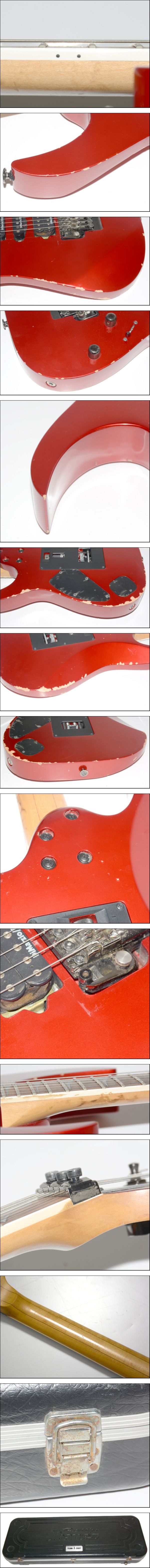 ・ボディ正面、底面にスレ、キズ、打痕、塗装はがれ、欠け、多少の汚れが見られます。 (画像にてご確認ください。) ・ボディ側面、背面にスレ、キズ、打痕、塗装はがれ、塗装クラック、欠けが見られます。 (画像にてご確認ください。) ・ネックに多少のスレ、キズ、打痕、一部に汚れ・変色が見られます。 (画像にてご確認ください。) ・ネックジョイントに多少の塗装クラックが見られます。 ・ヘッドに多少のスレ、キズ、打痕、僅かな塗装はがれが見られます。 ・指板にスレ、小キズ、打痕が見られます。 ・フレットにくすみが見られます。 ・バインディングに汚れ、ヤケが見られます。 (画像にてご確認ください。) ・ロックナットに多少のスレ・メッキはがれ・汚れ、小キズが見られます。 ・ペグ・ブリッジ・ジャック等金属部分にスレ、小キズ、汚れ、僅かなメッキはがれ・サビ等が見られます。 ・ピックアップにスレ、多少のキズ・汚れ、金属部分に僅かなサビが見られます。 ・ノブにスレ、キズ、メッキはがれが見られます。 ・セレクタースイッチに多少のスレ、小キズが見られます。 ス ・ネジにスレ、キズが見られます。 ・中央のバックプレートにスレ、小キズが見られ、他2つには保護フィルムが貼付されています。 ・ケースにスレ、キズ、汚れ、金属部分にサビが見られます。 (画像にてご確認ください。) 全体的にスレ、キズ、打痕、塗装はがれ、塗装クラック等の、 使用感が多く見られる状態です。 ネックはほぼストレートの状態です。 (現在の弦高は12Fで、1弦側:約1.5mm、6弦側:約2.0mm) 重量:約3.5kg、ナット幅:約42mm、スケール:約647mm |