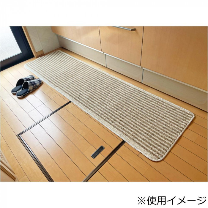 日本製 キッチンマット 黄麻ストライプ 50×180cm NA・ナチュラル 1714 收藏