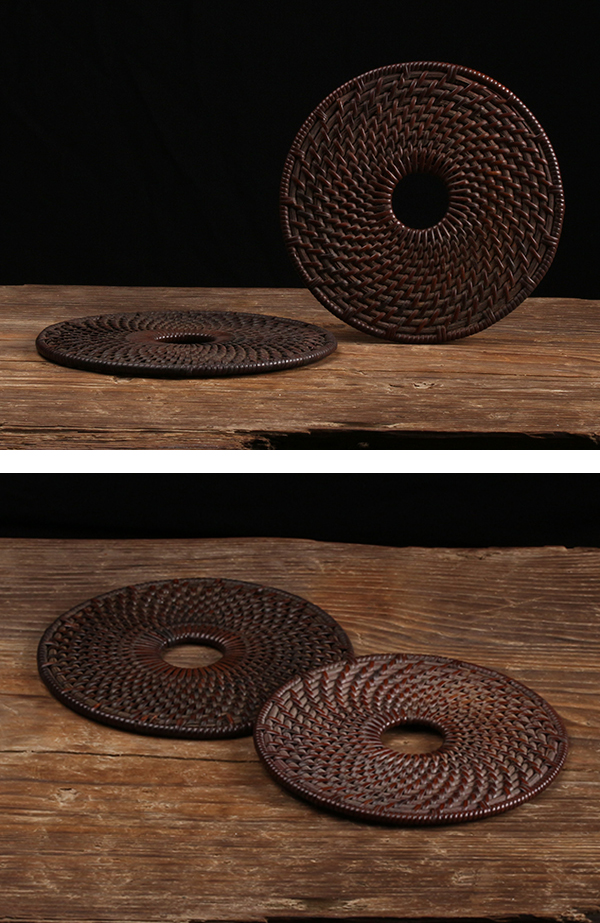 【美】煎茶道具 時代 藤編 瓶座 瓶敷 2枚 a001 收藏